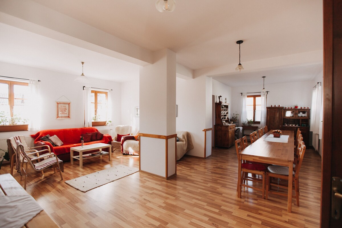 The house is located in Nagykede, a quiet little Transylvanian village. As you immerse yourself in the village, you will immediately feel the silence, peace and tranquility that this place exudes. In a professional setting, for couples, families, or larger groups of friends, it provides opportunities for active rest, felt-tip pens, quality, time out, with all of the home comforts and amenities at your disposal. A special play area designed for children ensures fun for the children.