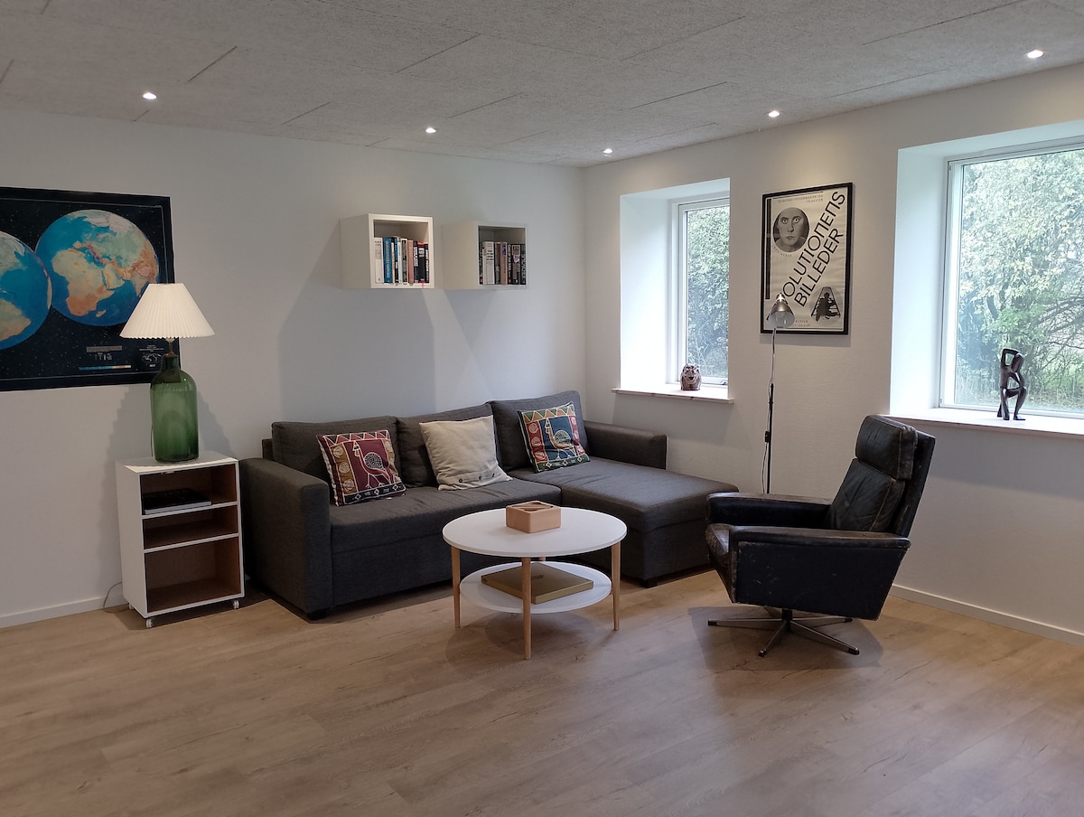 Charming small ,designer house with roof terrace and wood deck - 1h. drive from Copenhagen. Supermarket 1000m, Beach 500m. Forrest 700m. Romantic hideaway for 2 - or the small family. The Sea, The woods, Countryside, Seaview, Private fenched in yard ( dogs welcome) Please observe: The minimum rental is 7 nights. In peak-seaon June-Okt. the house is rented out primarily from Saturday to Saturday - for 7, 14 or 21 nights.