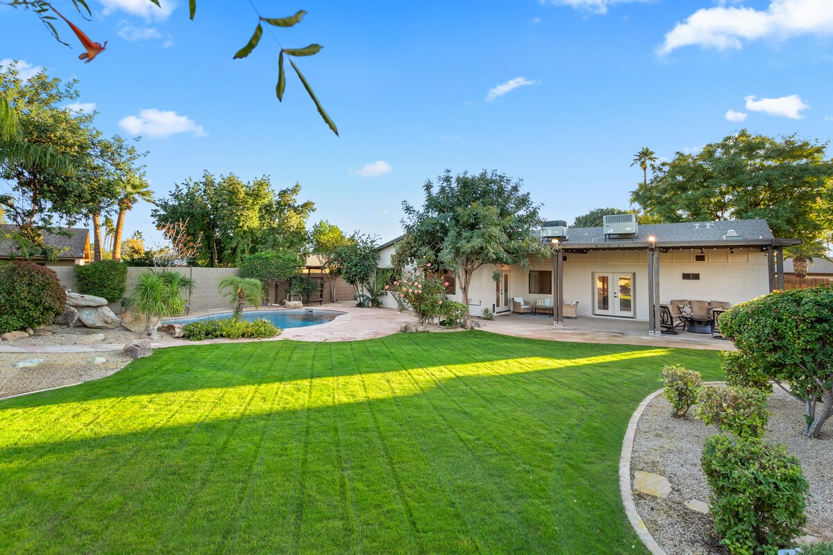阳光明媚的斯科茨代尔绿洲|度假村风格泳池+草坪