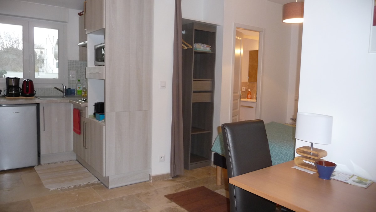 SITUE DANS L'ANNEXE DE NOTRE MAISON, STUDIO CITADIN TRÈS LUMINEUX ET FONCTIONNEL, AVEC UNE ENTREE INDEPENDANTE, AVEC UNE COQUETTE TERRASSE PRIVATIVE DONNANT SUR LE JARDIN AU CALME, PROFITANT DE PLACES DE PARKING GRATUITES DEVANT LA MAISON, A 5 MN DU CENTRE VILLE HISTORIQUE EN VOITURE, DESSERVI PAR TRANWAY ET BUS . A 5 MN DU CENTRE COMMERCIAL ODYSSEUM. ACCÈS AUTOROUTE A9 ET AÉROPORT DIRECTS.