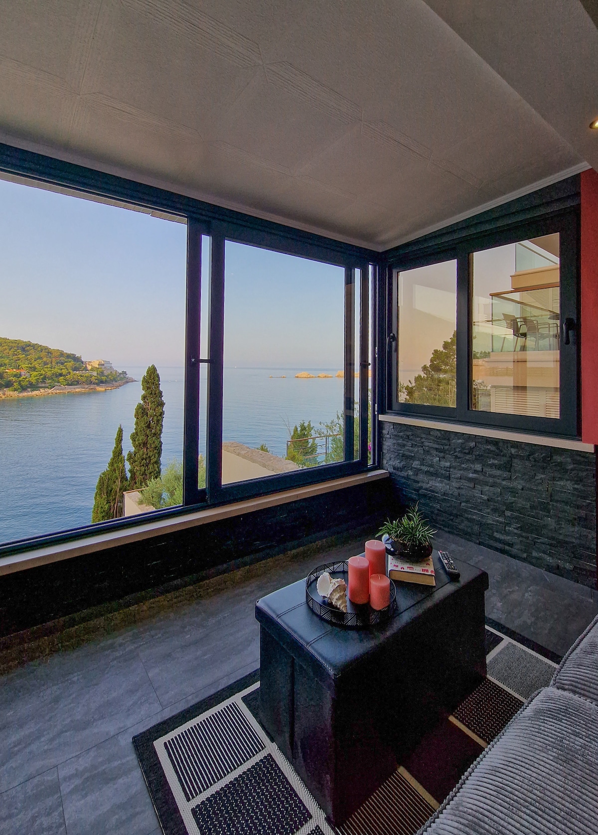 Relax in our unique apartment, enjoying the stunning view of the Lapad bay and the sound of waves in the comfort of your bed. We are just minutes away from beach, beautiful promenade, best bars and restaurants in town, 10 minutes ride from the Old Town, free parking place