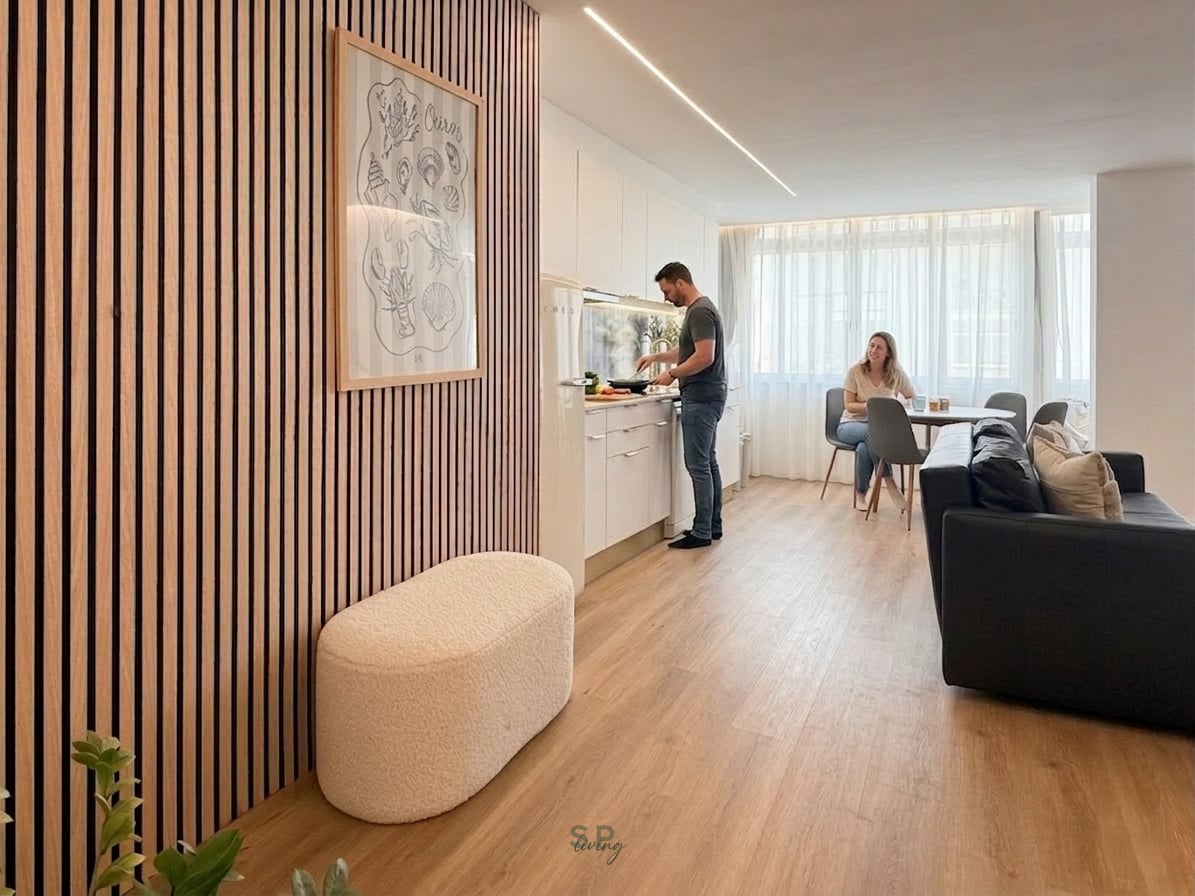 Apartamento reconstruído por arquitecto, excelente privacidade, exposição solar, com wifi, e praia a 150m. 1 suite com SPA e banho turco com aromaterapia. 1 suíte com terraço com vista mar, tela de projeção de cinema. Sala com vista de mar, rio, e terraço, onde poderá disfrutar de uma zona de estar e de um barbecue com grelha em ferro forjado. Perto de restaurantes, cafés e supermercado, e estação de comboio. Ar condicionado e piso aquecido em todas as áreas, TV 4K e box independente por suíte.