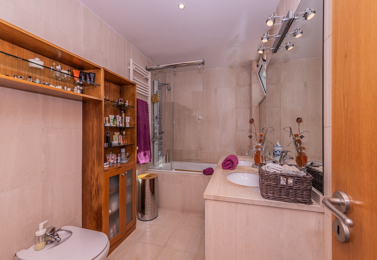Oeiras, Large 4 bedroom apartment located at the Santo Amaro Bay and beach, 2 minutes from the coast-line train to Lisbon or a 15 minutes’ drive to downtown Lisbon and within short reach of Cascais, Estoril and Sintra.The apartment has been fully renovated with two large massage shower bathrooms, a separate guest bathroom and a large fully equipped kitchen. Top Portuguese architect design of dining and living room with fireplace and large balcony with full view of beach and Oeiras marina.