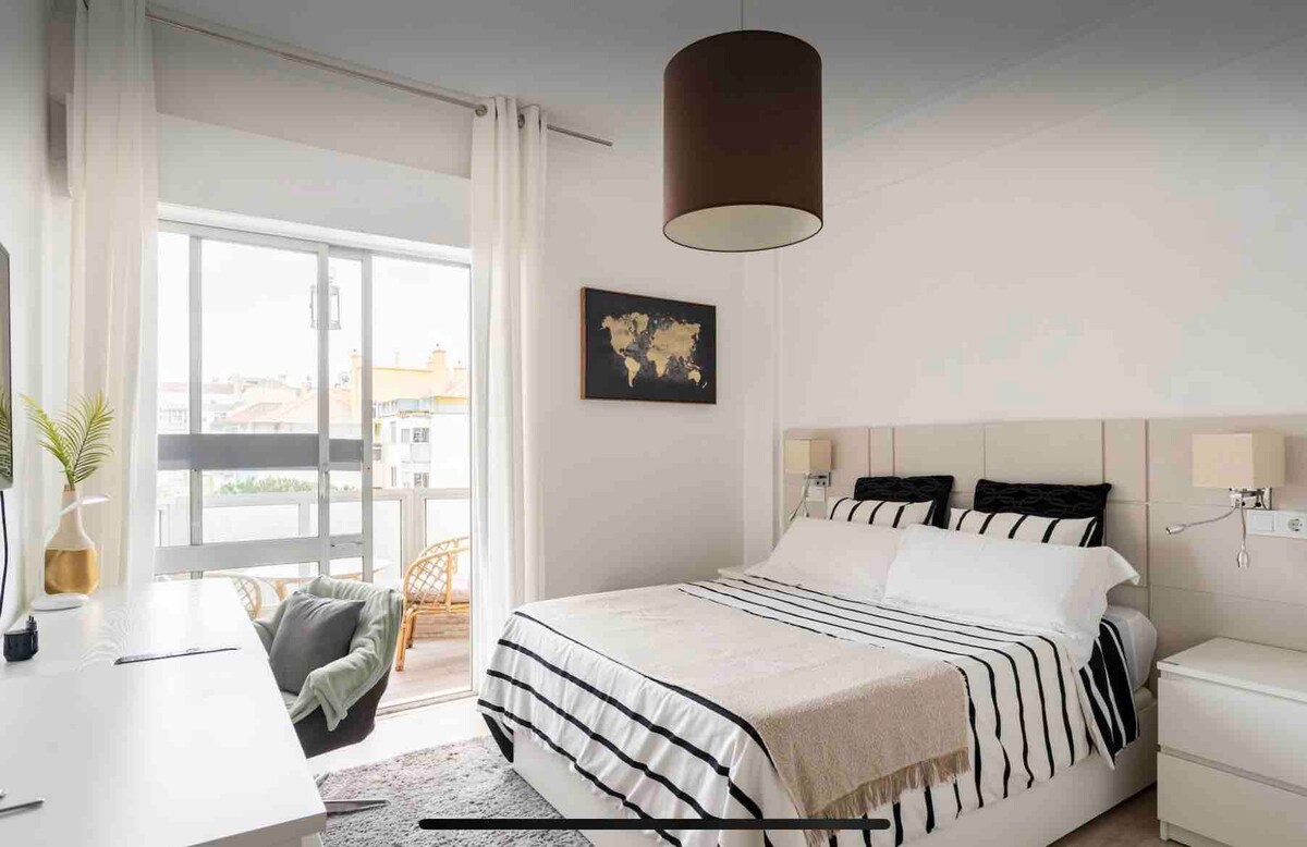 Apartamento a 3 minutos da praia. Com tudo o que necessita para uma experiência pacífica e relaxante. O centro de Carcavelos fica apenas a uns minutos de distância, e a meio caminho entre Lisboa, Cascais e Sintra. Grande variedade de supermercados, cafés, restaurantes, farmácias etc Muito perto da faculdade também! Apartamento com decoração moderna, com muita luz e espaçoso!
