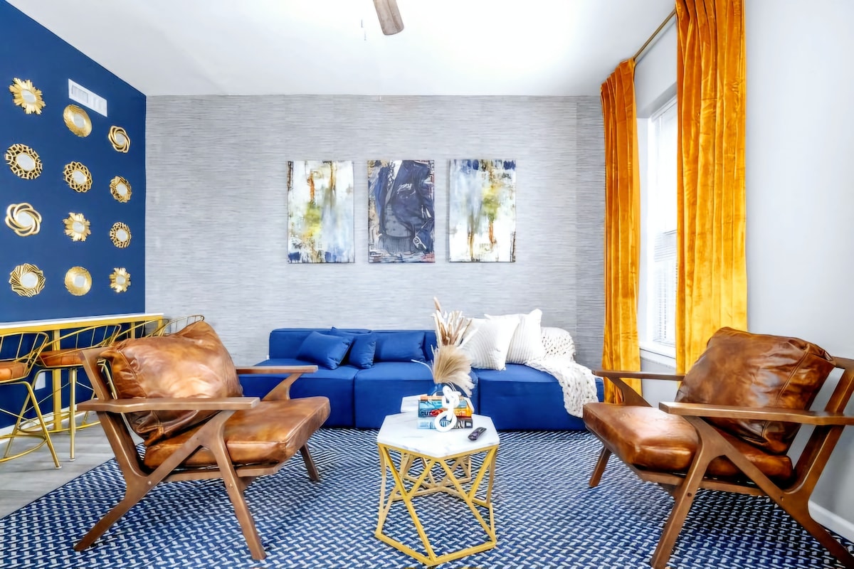 This rustic themed modern Soulard home has brand new everything to the studs! Some of many features include: -65in Samsung 4K TV w FREE NETFLIX -Free next door shuttle to all home Cardinals, Blues, STL FC and Battlehawk games -Walk to Dukes sports bar, McGurks patio, Mollys night club, Chavas mexican, Goshen coffee, Hammerstones brunch, Famers Market, etc. -Walk in shower w custom tile, massive shower head + relaxing seat -Professionally designed -Fully equipped kitchen -In unit washer/ dryer