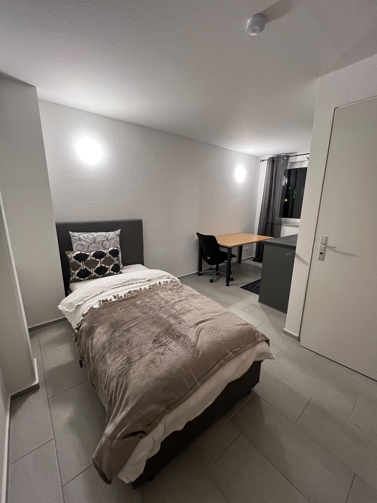 ZIMMER BEGONYA - ROOM 104 Diese stilvolle Unterkunft liegt sehr zentral. Zu Fuß erreicht man unter 5 Minuten die Bahnstation, ein Einkaufszentrum, Supermärkte wie Rewe, Dm, Aldi etc. Die Zimmer sind möbliert und voll ausgestattet. Jedes Zimmer hat ein eigenes Schloss, ein Badezimmer und eine eigene Küche. Selbstverpflegung, unmittelbar in Fußnähe gibt es mehrere Restaurants und Frühstückscafes. Nichtraucherzimmer, sehr große Dachterasse mit Skylineblick. Mit Fußbodenheizung, Neubau aus 2024.