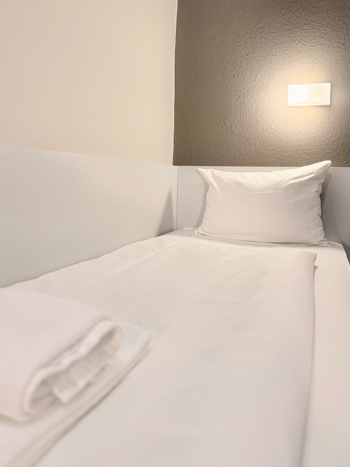Welcome to your urban retreat! Our Standard Room offers modern comfort with sleek design touches. Relax in a cozy atmosphere after a busy day exploring Frankfurt. Equipped with all essentials (air condition, espresso machine, rain shower!) for a comfortable stay, it's perfect for solo travelers or couples.