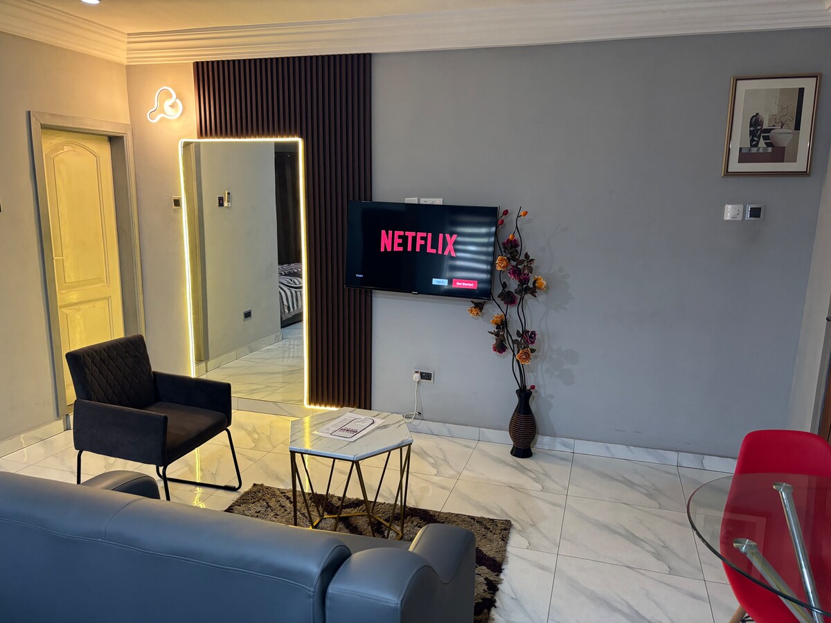 This apartment is perfect for a group of 2 to 4. It’s located in the East Legon -Adjiringanor area. It’s about a 2 min walk from Ability Square or the Star Oil Filing station, and it’s about 25 mins from the Kotoka International Airport. This unit is on the ground floor. The building has a 24 hour security, CCTV and a stand by generator. Complimentary WIFI is available. Guest are entitled to 10 Gigabits of data per day. Additional data may be requested for an extra cost per extra Gigabit.