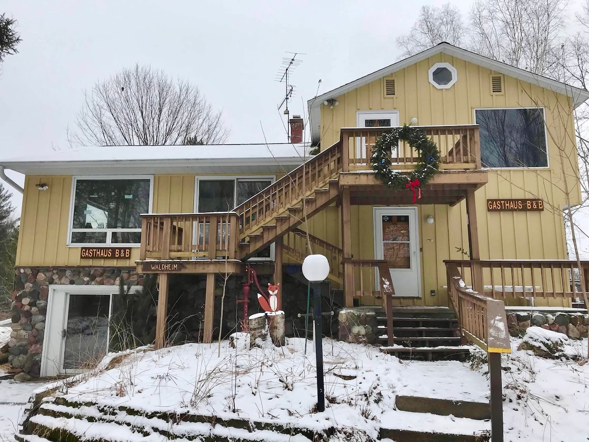 This family-size, fully-enclosed suite with a separate entrance from the host's attached house offers all the comforts of home within 15 min. of Minocqua, Rhinelander, and premier outdoor experiences- hiking, biking, fishing, boating. Inside find bright spaces, full log beams, and a hobbiton feel; open concept living area with fully stocked kitchen, table, bunk beds, large couch, TV and Wi-Fi; bedroom with queen bed and stowed air mattress; full bath; play room. The entire suite space is yours.