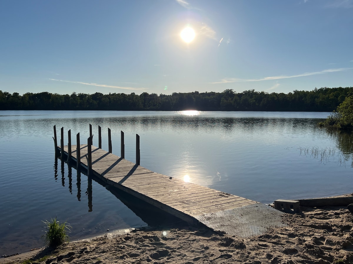 At Sweet Retreats Lake House, we can host a family or small group vacation. 5 minutes off I-75, exit 212 in West Branch. Lake George -a 90-acre all sports lake - amazing fishing, boating, and swimming at our mini sandy beach (or ice fishing in the winter). Public boat launch is on the other side of the lake. We have a boat dock, kayaks, paddle boards, row boat, lily pad and water toys; gas grill and Fire pit (we provide wood) Free WiFi 55" + 65" tvs games/toys for kids -for a rainy Day