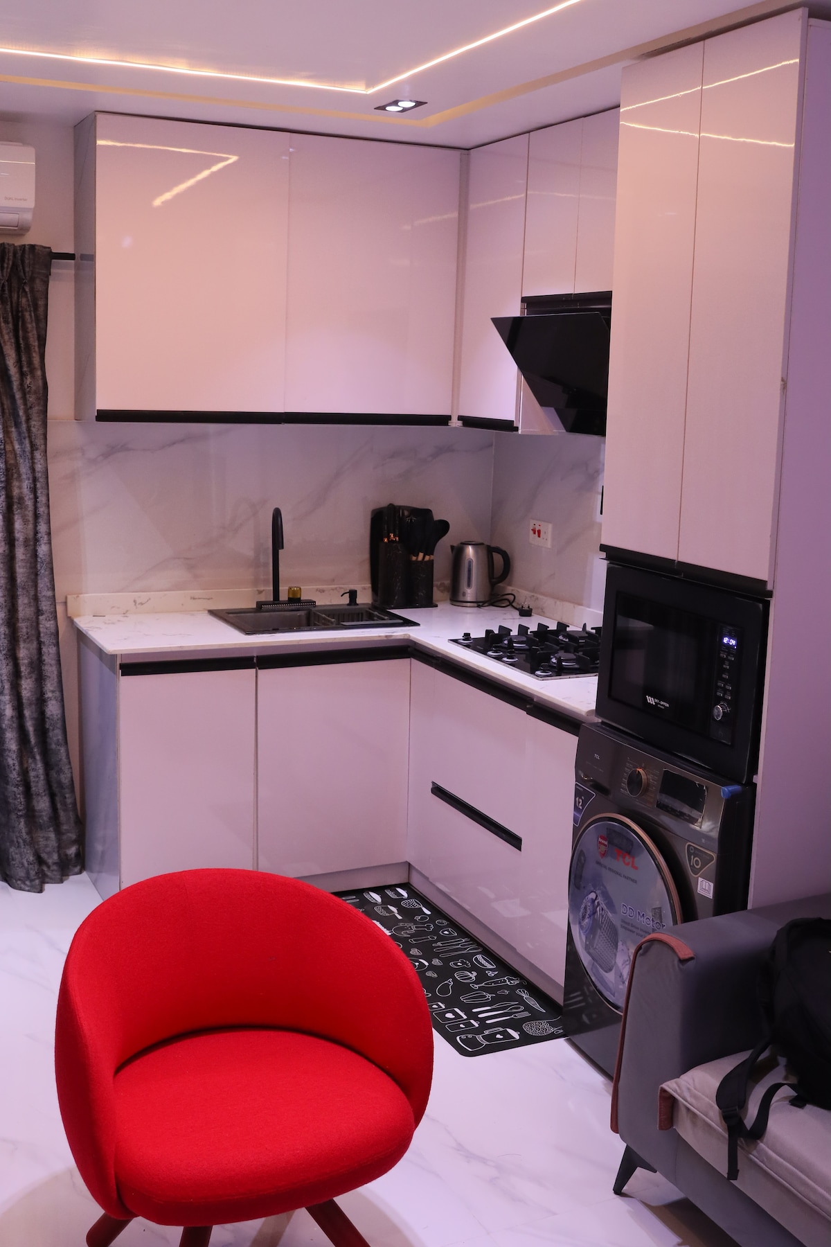 Welcome to this beautiful designed one bedroom apartment, located in Toyin street ikeja, close to everywhere. it’s a fully furnished with modern and sophisticated amenities to offer you a seamless living experience, this apartment combines elegance with functionality, thoughtfully decorated with sleek furnitures, 65inches Samsung QLED TV and contemporary art, ideal for relaxing and entertaining. A spacious sanctuary with comfortable bed, fully equipped kitchen with state-of-the-art appliances.