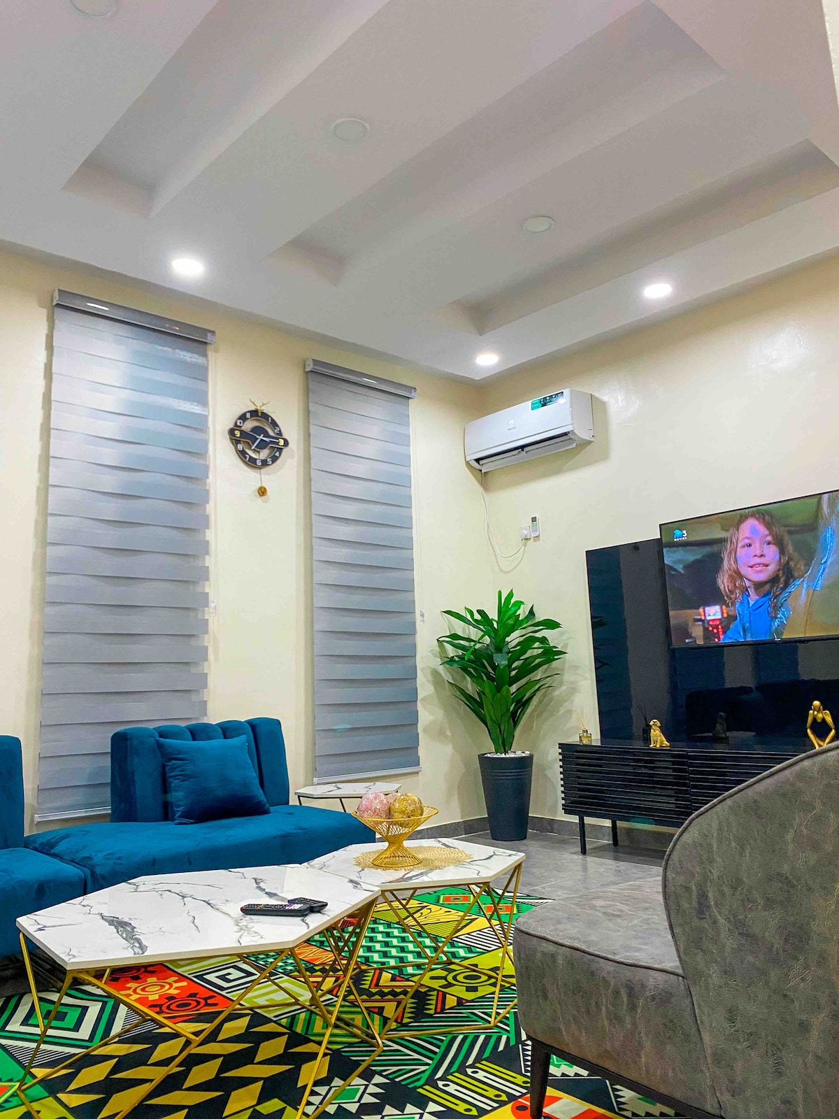 Welcome to Elmstead Luxury Aprt , your stylish retreat in Lekki Ikota. This 2BR/2BA haven offers A/C comfort, a 65″ TV in the living room, 43″ TV in bedrooms, free stable unlimited Wi-Fi, and 24/7 power with inverter & solar. Enjoy smartlock self check-in, free parking, an in-unit washer, and a kids’ bouncing castle. 1 Free cleaning for stays over 5-6 nights. Close to Lekki conservation Center, Mega Chicken, Blackbell & Blemco. perfect for solo travelers, business guests, families, or long stay