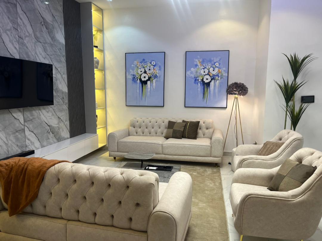Furnished 4 bedroom semi-detached duplex is fitted with all essentials you need in a home, pure white walls and colorful accents, equipped with well maintained and quality services ranging from kitchen amenities, Washing machine, Water heater, Air conditioner, cozy bedrooms, 24 hrs Wifi, Tv, DSTV and explicable amenities.