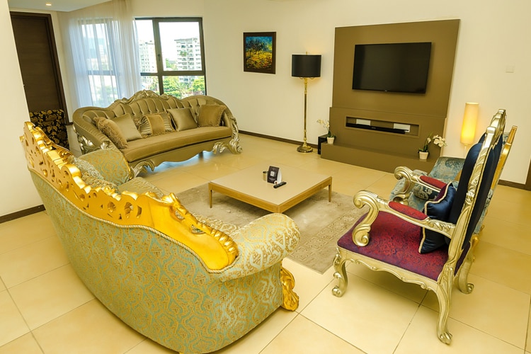 Located in a quiet, gated community approached through a cul-de-sac, the Townhouse, with views of the rolling greens of Ikoyi Club golf course, offers a serene getaway from the hustle and bustle of Lagos.