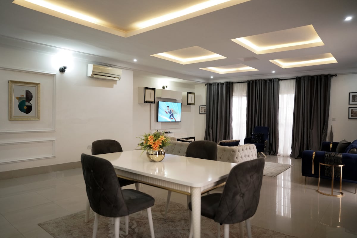 Have fun with the whole family at this stylish place, literally on the road leading to several beaches, also shares very close proximity to Giwa Gardens water park. very spacious bedrooms, with 2 living Rooms. you do have a cleaner/house keeper attending to all needs as they arise. Daily cleaning of this duplex is provided by our stay-in staff. a chef is provided upon request but this attracts additional fee. Hosting for us is a passion, give us a chance to do what we know to do best😁