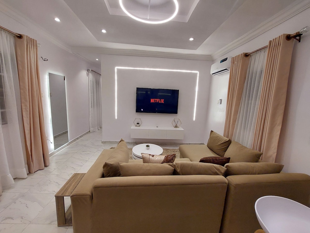 Have fun with the whole family at this stylish place, literally on the road leading to several beaches, also shares very close proximity to Giwa Gardens water park. very spacious bedrooms, with 2 living Rooms. you do have a cleaner/house keeper attending to all needs as they arise. Daily cleaning of this duplex is provided by our stay-in staff. a chef is provided upon request but this attracts additional fee. Hosting for us is a passion, give us a chance to do what we know to do best😁