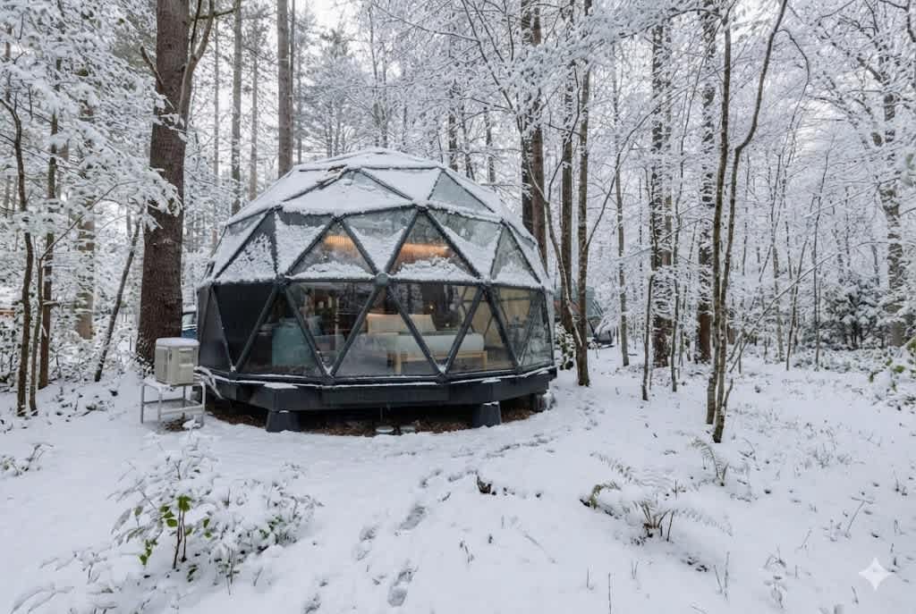 The Canopy is one of 5 luxurious tiny homes that make up Littlefield Retreat, a tranquil woodland village of 3 treehouses and 2 hobbit houses – each with its own private hot tub and dock. To see all five dwellings, click on the photo to the left of “Hosted by Bryce”, then click “Show more…”. This 15-acre forest retreat on Littlefield Pond offers our guests an experience that feels like a trip up to the woods of northern Maine, but is closer to home and to all the attractions of southern Maine.