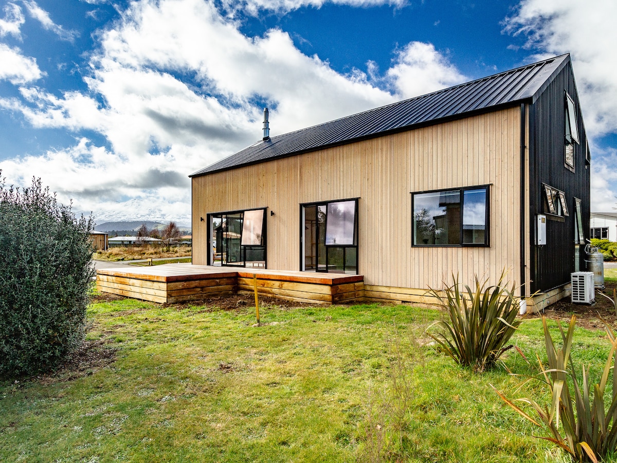 Modern 3 bedroom home with open plan living/dining/kitchen looking out to stunning views of the mountain. Situated on the edge of town, you'll have space to enjoy and a quiet neighbourhood to relax in. A short 15 mins walk from town or a quick 1 minute drive. With a fireplace, heatpump and heat transfer system, you'll be cosy and warm all night. High-quality bed linen, large deck with views, washer/dryer, dishwasher, games, puzzles, spa pool and of course a coffee machine (Nespresso pods)!