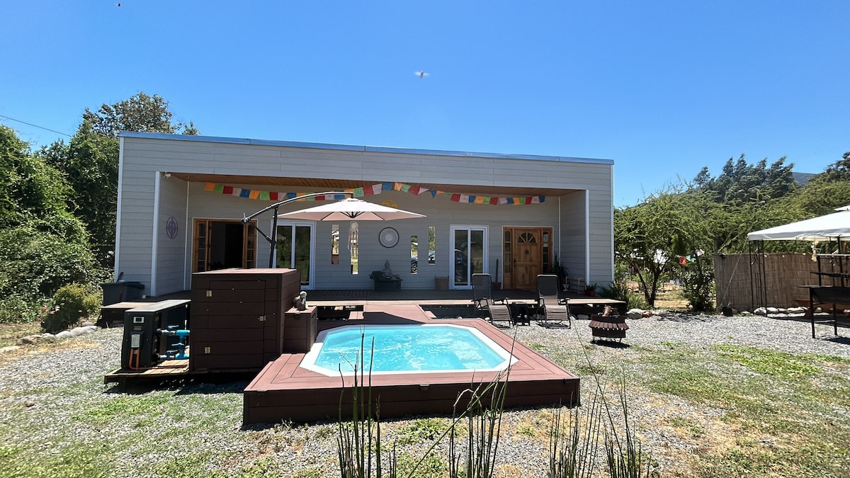 Olvídate de las preocupaciones en este gran alojamiento: Es un Oasis de Tranquilidad y Seguridad y Exclusividad, Ideal Parejas solas o con hijos Completísima Cabaña;Cama 2Plazas+2 camas singles, Aire Condicionado,TV,Wifi,Encimera, Refrigerador,Microondas,Hervidor,Ollas,Vajilla,Utensilios,jugueraTé,Café,Comedor Inte y Exterior Piscina,Tinaja🔥Quincho, Asador, mobiliario,Lindo Jardín,Árboles,Reposeras. CercanoViñas,Museos,Restaurantes,Lugares con Encanto,Historia y Tradición Chilena.