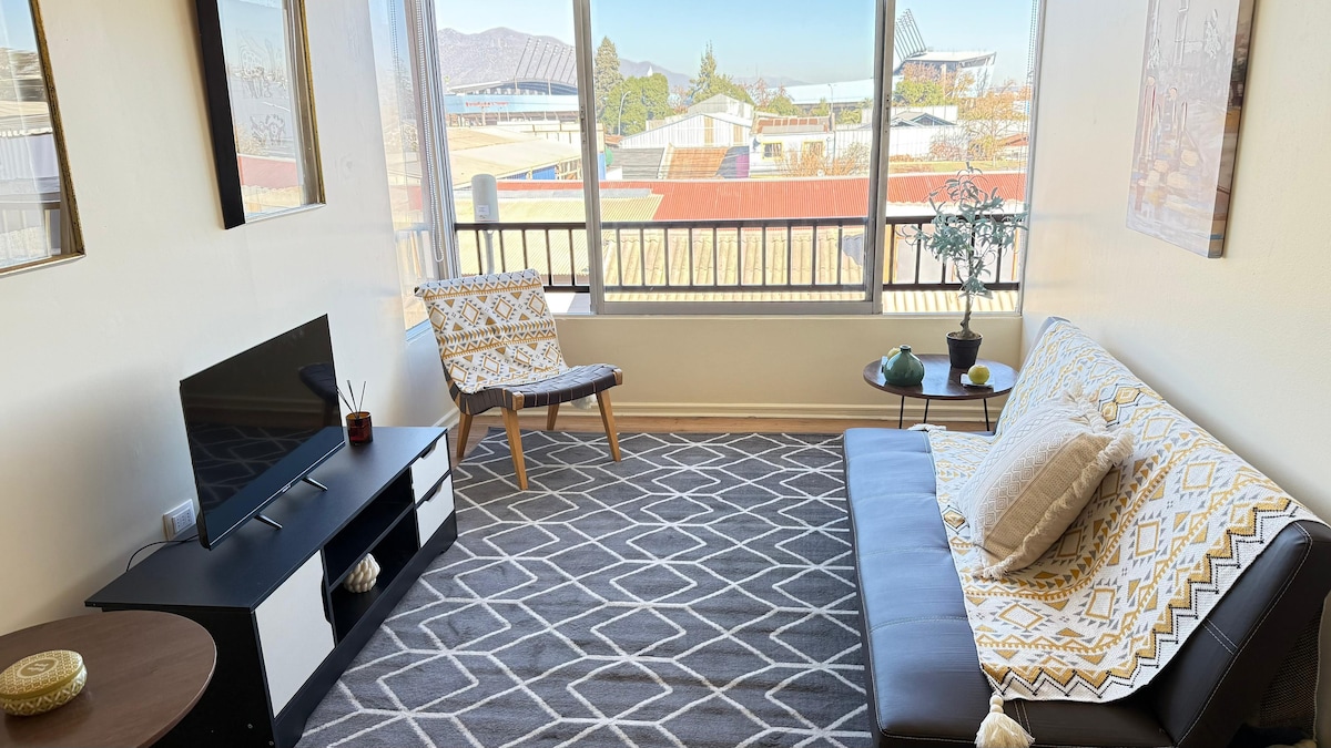 Cozy Studio in the Heart of Rancagua This modern one-room studio is designed to offer you comfort and functionality. Everything you need for two people Fully equipped kitchen Rest and entertainment area Well-equipped bathroom Excellent location: Just 5 minutes from Terminal O'Higgins 6 minutes from the train terminal 4 minutes walking to Universidad O'Higgins Easy access to public transportation from the street