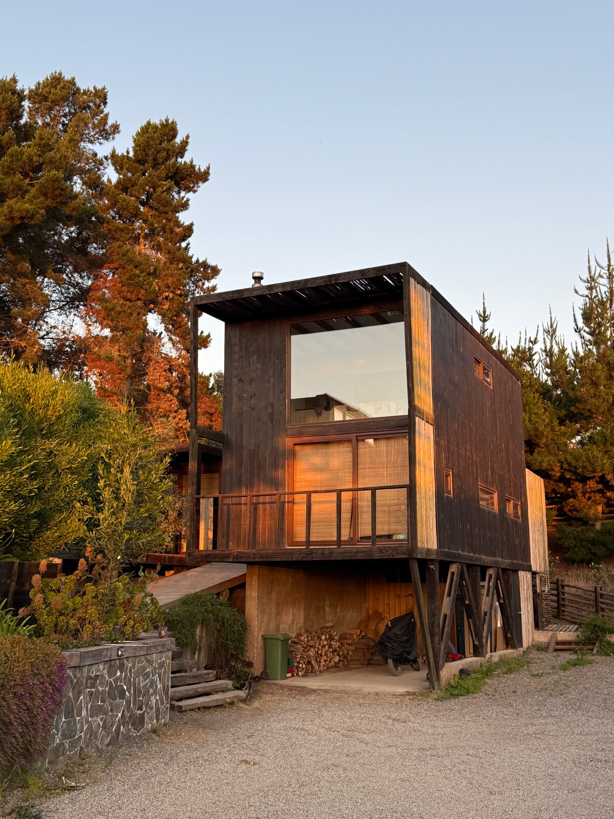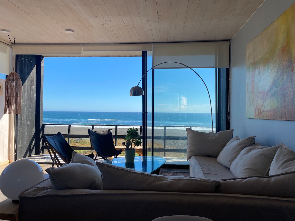 Well equipped 2-storey cabin only meters from the beach. Located in a quiet, private condo (super safe for kids) with own parking. The cabin is equipped with comfortable, modern furniture, ideal for couples or families looking for a beach vacation. Shops, supermarket, cafés and restaurants within walking distance. It has its own FO Wi Fi. If it gets a bit chilly, there's even a wood stove. If you're a surfer, top surfing venue, Punta de Lobos, is a 5 min drive (or 30 min walk along the beach).