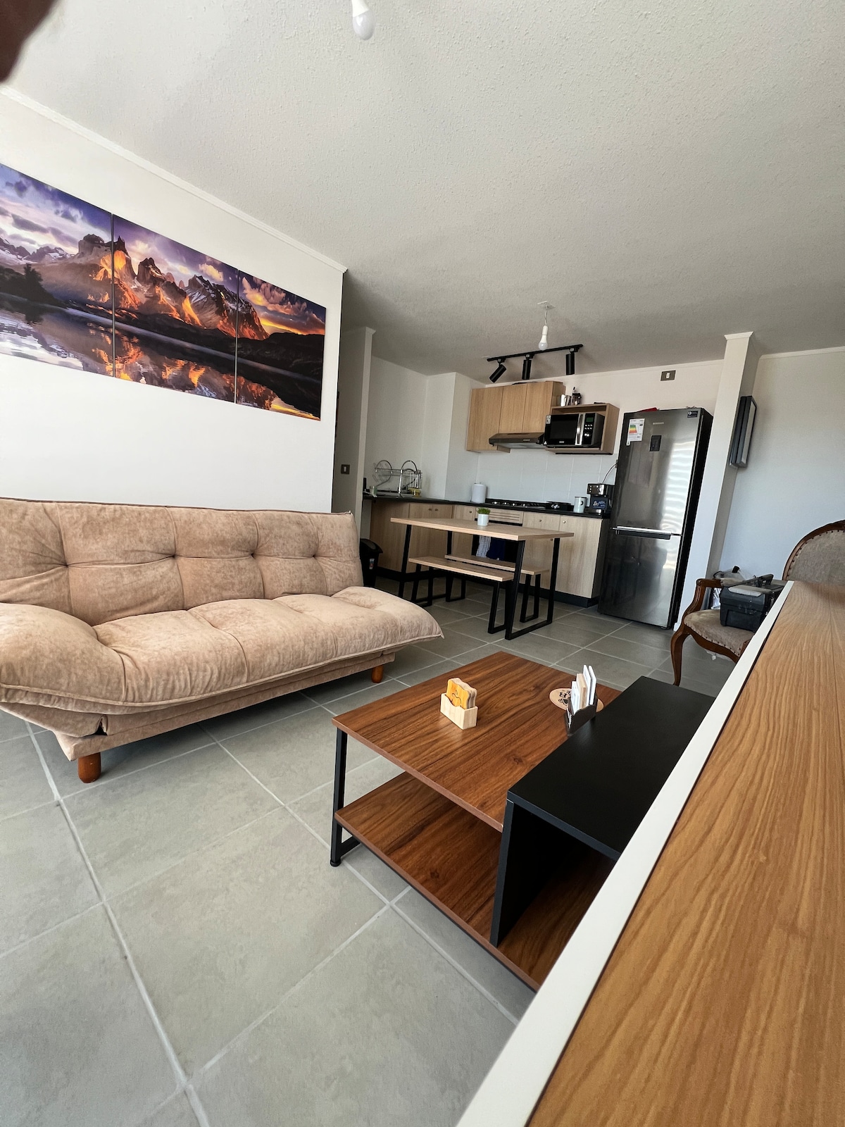 Relájate en este espacio pensado en ti, disfrutaras de un lugar tranquilo, elegante, acogedor y con todas las comodidades para que pases la mejor estadia en nuestra ciudad. A poca distanca de supermercados, centros comerciales, cefam... VIAJA LIVIANO! En este departamento encontrarás todo lo necesario para tu estadía; té, café, azúcar, endulzante, aceite, sal, papel higenico, shampoo, jabón, toallas, secador de pelo, sábanas, plancha, lavadora-secadora, queremos que te sientas como en casa.