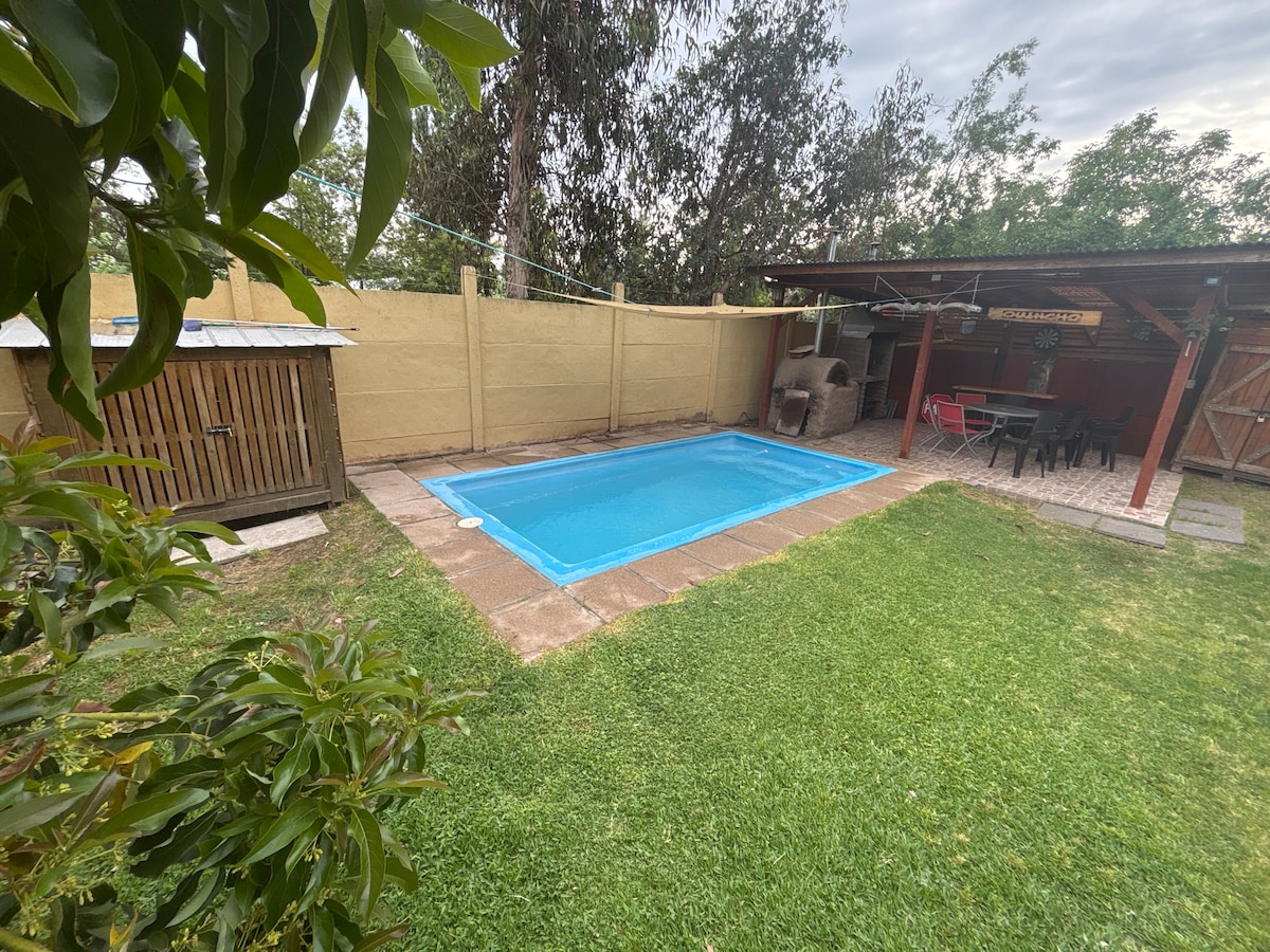 Hermosa y tranquila casa de campo con gran piscina y patio. Casa full equipada que cuenta con 2 amplias habitaciones, 2 baños, cocina, comedor y living. Además posee terraza con living-comedor, bosque de almendros, toldos, quitasoles, hamacas, mesas de piknic, bancas, reposeras y mesa de taca taca. Tinaja con agua caliente (reserva con valor adicional y al menos 2 días de antelación). 🐕 Pet Friendly, perímetro cerrado. 📍A 1 hora de Santiago. 🐈 Mi gatita, Petra, vive en el terreno.