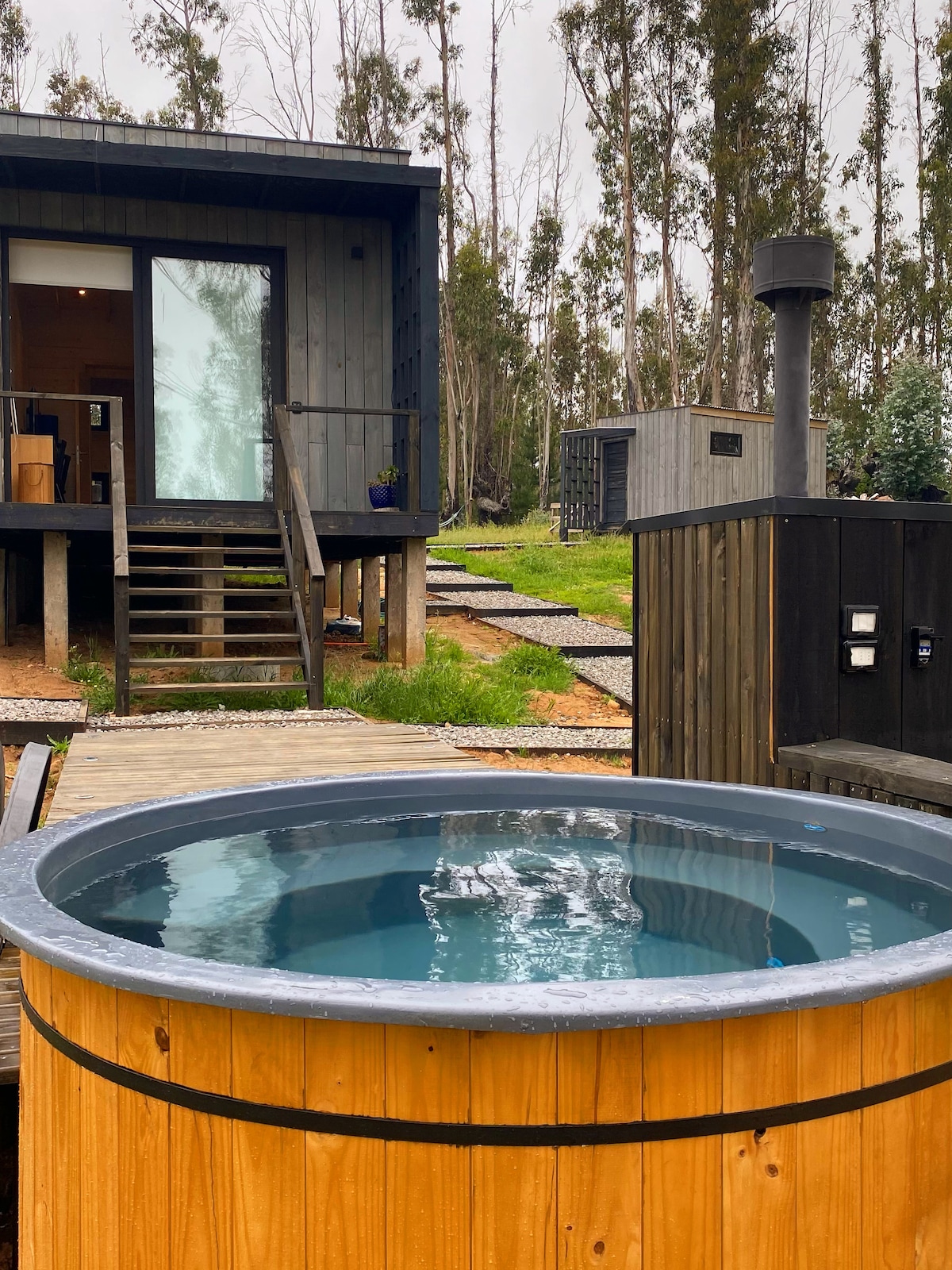 Lodge Acacia Caven Un espacio de lleno de tranquilidad y confort ,conectado con la naturaleza, a 4 km del centro de de ciudad de Santa Cruz, ubicado en parcela de agrado privada. Casa de 100 metros cuadrados con Hot Tub externo, Terraza, Fogón, estacionamiento propio, zona para asado y entrada independiente.