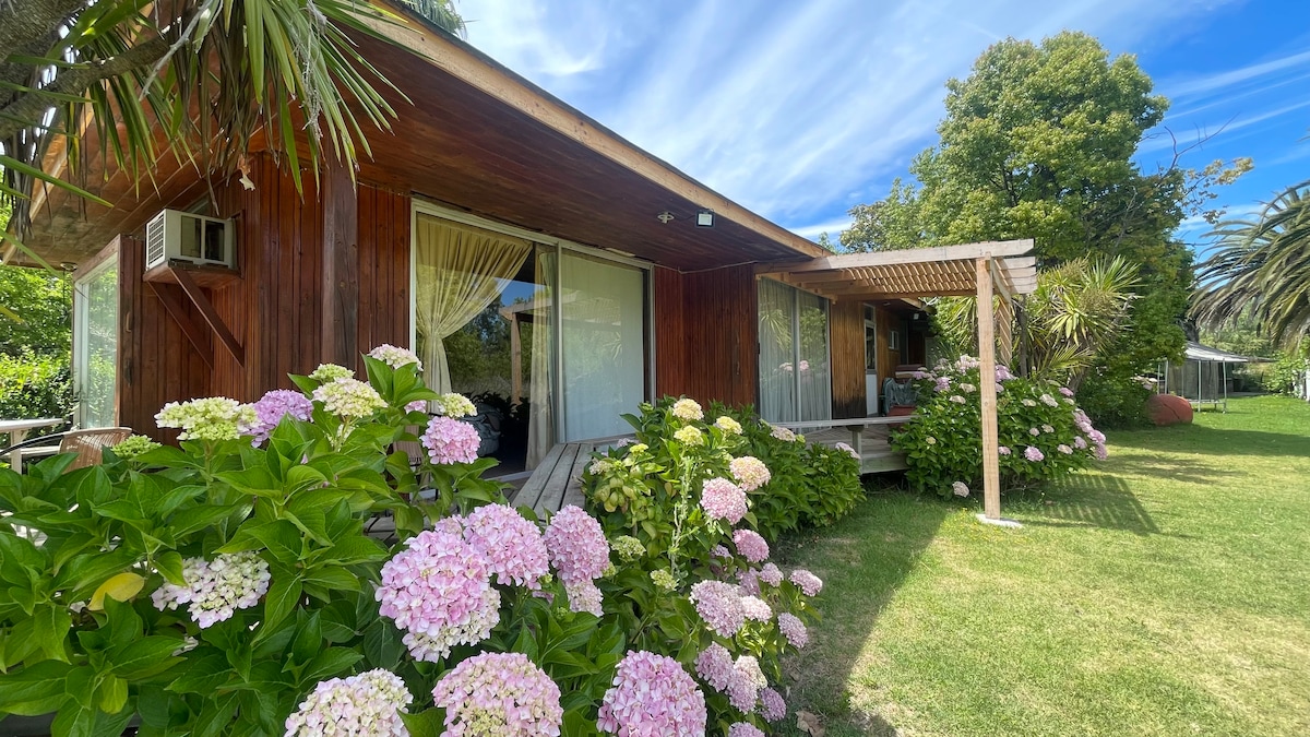 Wooden cabin with hot tub & Starlink, overlooking Cáhuil Lagoon and native forest. Secluded for silence, yet close to beaches, sightseeing, restaurants, and shops for all essentials. Features sunny terraces, skate ramp, fire pit, and gas/wood BBQs. Full cell signal and fast WiFi make it the perfect nature getaway. During winter season with rain a 4x4 car is recommended.