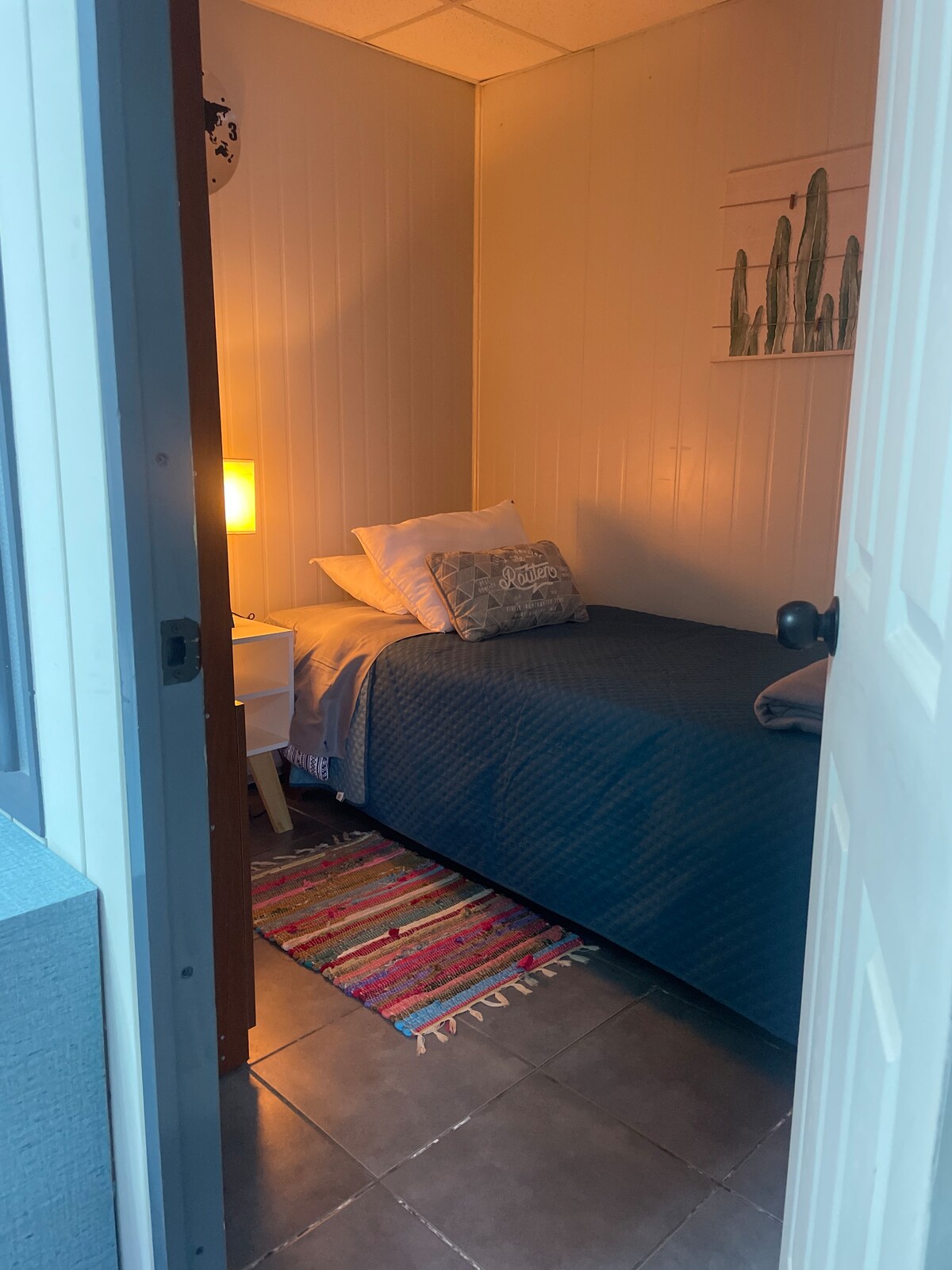 Disfruta de la sencillez de este alojamiento céntrico, a 2 minutos de MALL CURICO, a 5 minutos (2km) de RUTA 5 sur. cuenta con : *2 camas *baño /ducha (secador de pelo toallas de mano botiquin *cocina (frigobar hervidor horno electrico loza) te cafe hierbas. *estacion de trabajo *aire acondicionado *estufa a gas *wifi *amplio estacionamiento *entrada con porton electrico camaras de seguridad. *cercano al centro de Curico ,TERMINAL Y ESTACION DE TREN PLAZA DE ARMAS ,FELICUR MERCADO CENTRAL