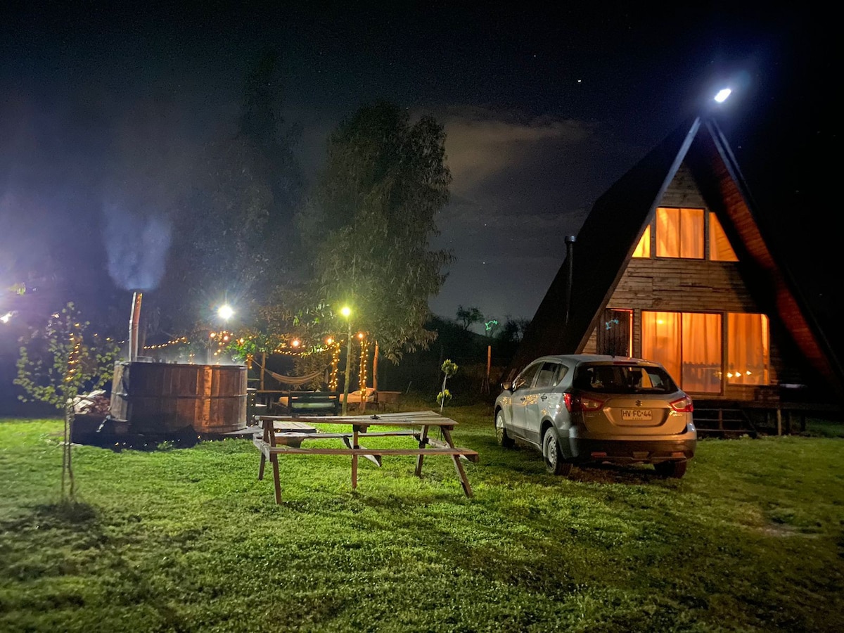 Aléjate de todo y duerme bajo un manto de estrellas. lugar de ensueño con una vista privilegiada hacia la laguna de Convento Viejo, cuenta con tres cabañas alpinas totalmente equipadas y amplias hot tubes. Acceso a Río Teno y laguna en el cual se puerden realizar actividades como pesca y navegar en kayak, además de disfrutar de la flora y fauna característica de la zona.