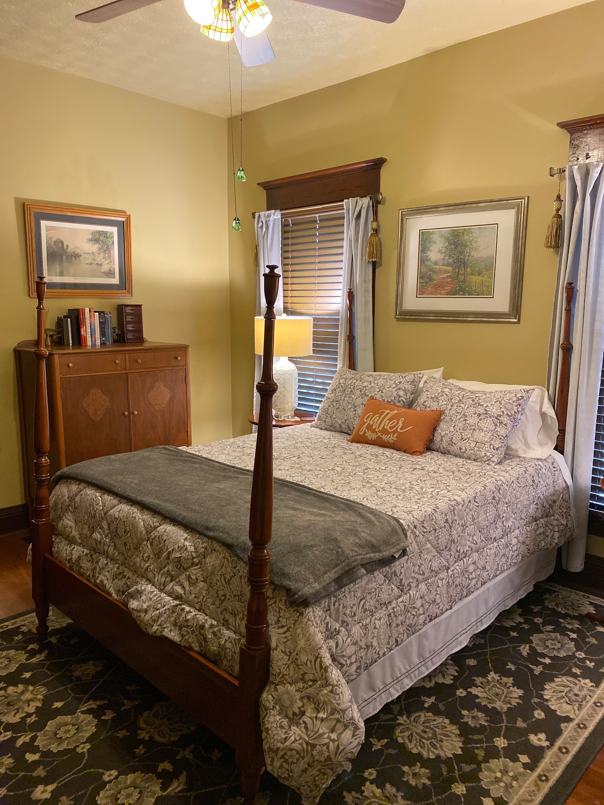 Located in the heart of the Bourbon Trail. Come and enjoy the peace and quiet of country living, but still close enough to cities. When you first arrive, you will find the entrance on a large, covered patio. There is a gas grill there for your use. We also have a fire pit, so bring wood. Feel free to take a walk down to the river at the bottom of our property. There you will find a park like setting where you can relax and listen to nature if you like. Eggs, bacon and biscuits provided.