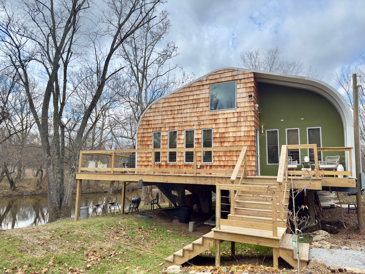 Bedroom 9 is up a flight of stairs in the The Big Creek Lodge on the 350 acre Luna's Trail property. Guests will enjoy beautiful views of Hanging Rock and Pilot Mountain from their private patio, a claw foot tub, and a walk in shower. Our restaurant is available Thursday - Sunday. Reservations are recommended but not required for on property guests and can be made by contacting the owners. There are sometimes large, private events downstairs. Please ask ahead if one may affect your visit.
