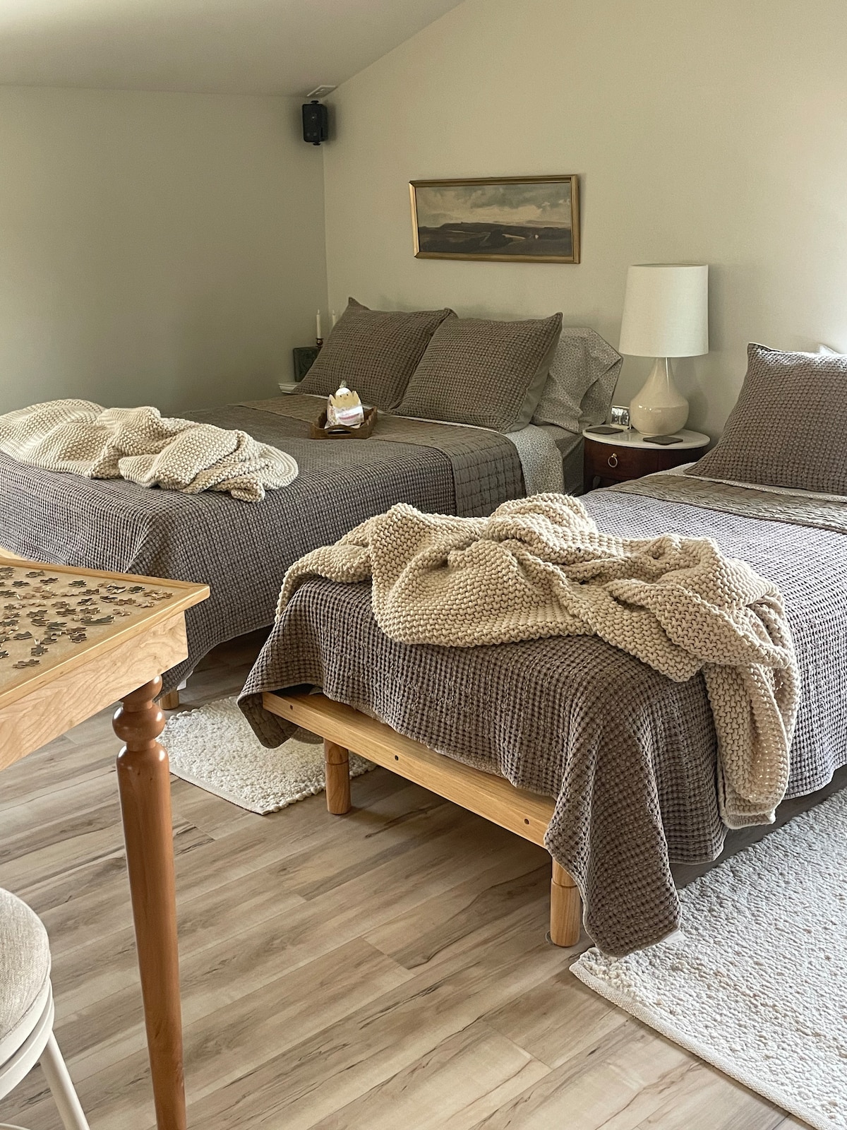 If there is one phrase that we would use to describe The Winery Loft, it is “attention to detail.” We spent over a decade building Le Petit Chevalier Vineyards and Farm Winery, and we are thrilled to open this unique experience up to guests! You can sleep where the rainbow ends! The Winery Loft features a spacious open floor plan, located on the second floor of our winery. Despite its openness, the loft is completely climate controlled, thoughtfully decorated and invites to simply relax.