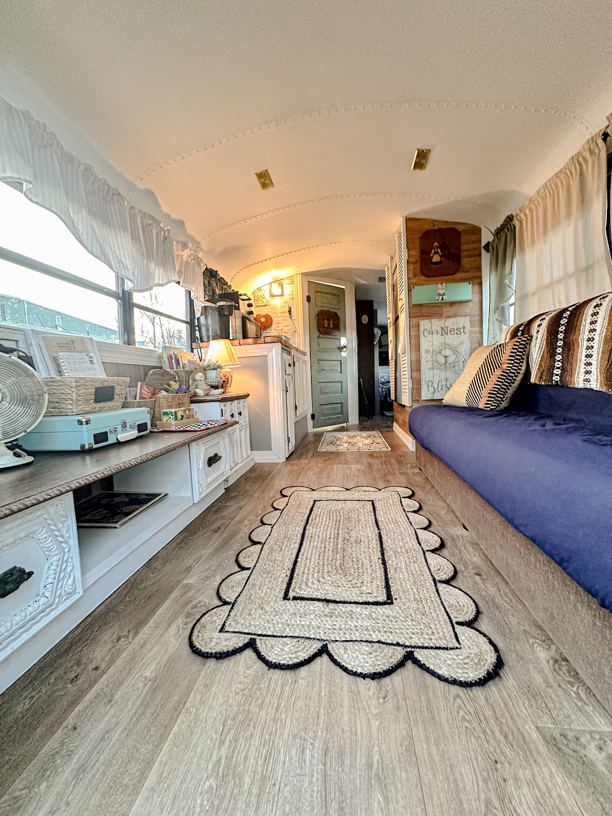This solar powered school bus "Schoolie" tiny home is nestled under open skies, near the forest, with a lake front view, a full bed, kitchen with two burner stove & sink, & a cozy couch. Bliss in the heart of the Shawnee National Forest on Interwoven Permaculture Farm, in Lusk Wilderness. Enjoy star gazing, swimming, and campfires. The chorus of nature will lull you at night, & greet you in the morning. It's a beautiful place to wake up! With kitchen, AC/Heater, this is ultimate glamping!!!