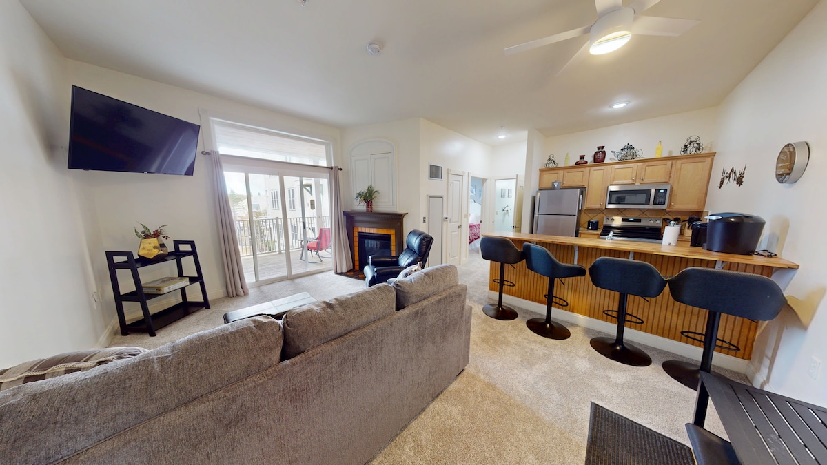 Ski in ski out condo onto the slopes of Winterplace Ski Resort. It is located on the second floor and the balcony overlooks the "Last Chance" slope. The condo sleeps 10 with two Queens, bunkbeds, and pull out couch. The kitchen is equipped with essentials including a coffee maker, pots and pans, an above range microwave, dishwasher, and everything you'll need for your stay. The living room contains an electric fireplace and a view out the sliding door onto the slopes. Towels are provided.