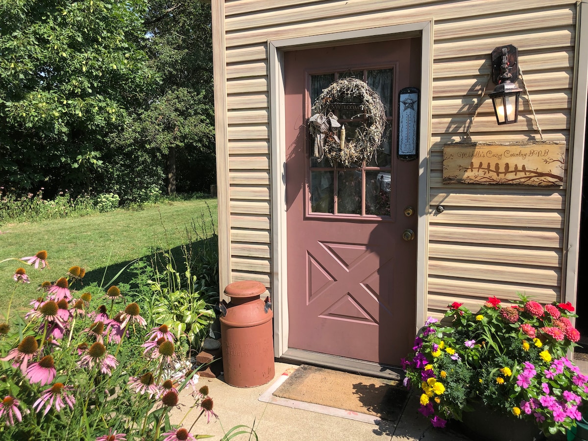 Spend the night "on the farm" in a scenic valley between the rolling hills of Holmes County, Ohio--the heart of Amish Country. Walnut Creek, Berlin, and Sugarcreek are mere minutes away! We offer a private setting so you can relax and breathe in the country air! Sit on the porch and watch the buggies roll by while you enjoy Chris' famous coffeecake--a favorite of our many returning guests! Soak in the whirlpool tub and let your cares float away. You will love our clean, cozy, and charming place!