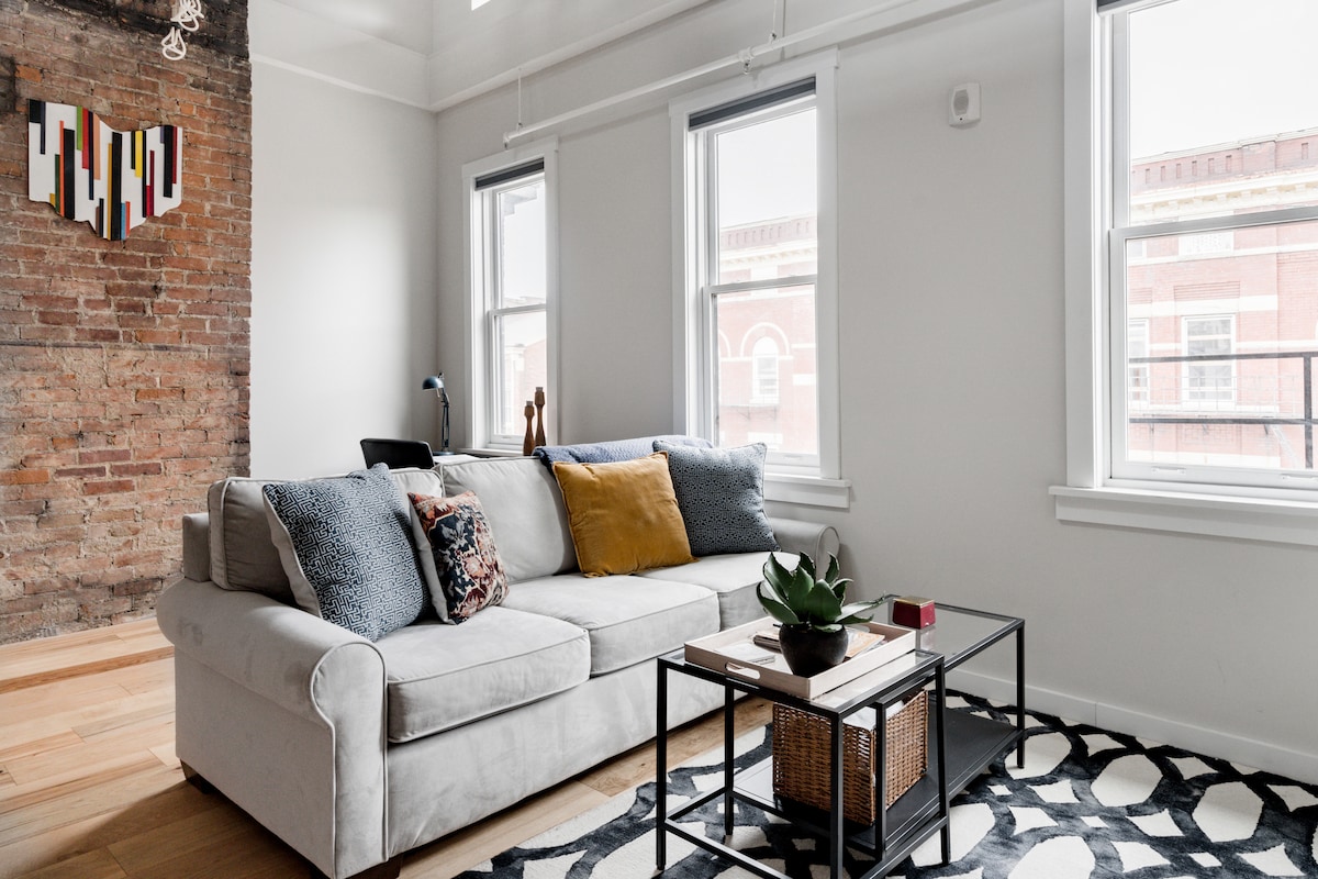 This historic condo has been newly renovated to blend modern design with rustic features. Its chic interior is accentuated by the exposed brick, quartz counter-tops, hardwood floors, and contemporary light fixtures The Space: Unbeatable location, top floor view of city skyline. KING sized bed in the loft and QUEEN foldout sofa mattress in the main living area. WORKSPACE with comfortable chair overlooking Vine and 13th street. 40 inch Smart TV in main living area with Netflix provided and high speed internet with Wi-Fi. Nest thermostat, washer and dryer, coffee maker included. SELF-CHECK IN. UNBEATABLE LOCATION, top floor view of the city skyline. KING sized bed in the loft and QUEEN foldout sofa mattress in the main living area. WORKSPACE with comfortable chair overlooking Vine and 13th streets. 55 INCH SMART TV in main living area with NETFLIX provided and HIGH SPEED internet with WI-FI. NEST THERMOSTAT (central heat/air) and ceiling fain with controller located in main living area and WASHER AND DRYER provided. Keurig with Coffee and Tea K-Cups included. SELF-CHECK IN. Parking Located at Ziegler Park garage for 8$ a day or Mercer Garage 10$ per day (closest) Available by phone call or text, live 14 minutes from condo The condominium's central location is walking distance to some of Cincinnati's desirable restaurants, lively bars, craft breweries, and high-end shopping. Go for a stroll in nearby Washington park, explore the museums, and spend the day at the zoo. Streetcar station 2 blocks away, 1 minute walk to Vine Street, 3 minute walk to Main Street. 1 mile to Reds/Bengals stadiums, .3 miles to Casino, .5 miles to local market. Our other condo: https://airbnb.com/h/courtcondogreatlocation Uber, Lyft, rental scooters, walking, streetcar, red rental bikes, also free rides from GEST GOLF CARTS (Banks/OTR/Pendleton/Casino)- CALL TO SCHEDULE (513-421-4378) or Wave them down!