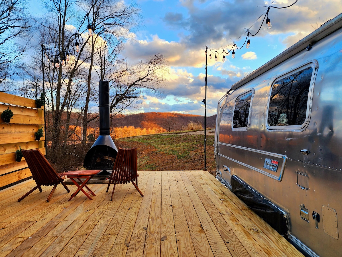 Step into the most romantic couples getaway in the heart of the Hocking Hills Our fully modernized, yet Vintage, 1974 Airstream gives off strong Dr. McDreamy vibes. Experience your own fairytale... Picture this; sitting in the hot tub, glowing with the romantic ambiance of a crackling fire, you sip on your favorite beverage. Music playing, the tranquility seems to engulf your soul. Just when you think it can't get any better, a shooting star lights up the night sky. Make a wish 💫