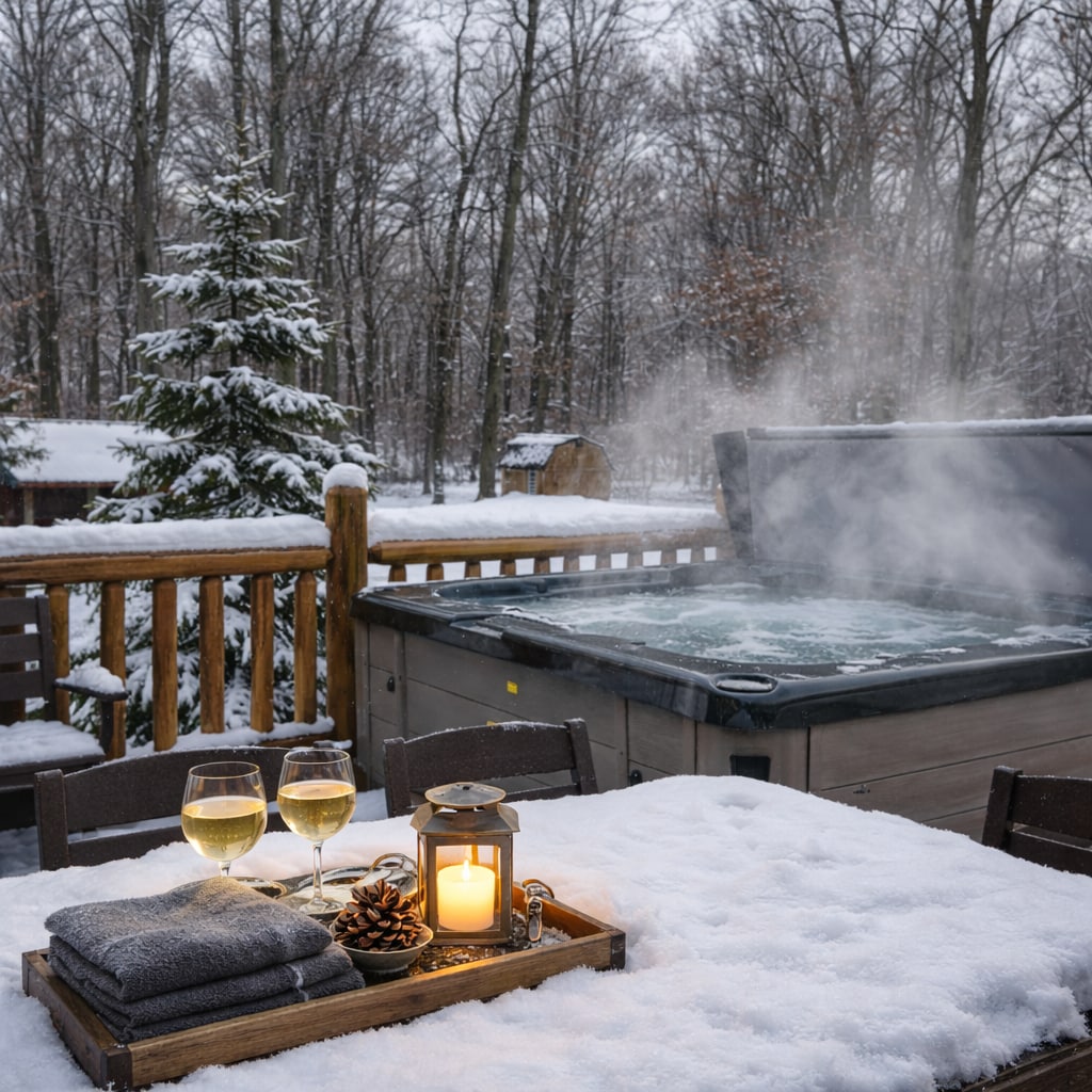 带热水浴缸、泳池和家庭影院的小木屋度假屋