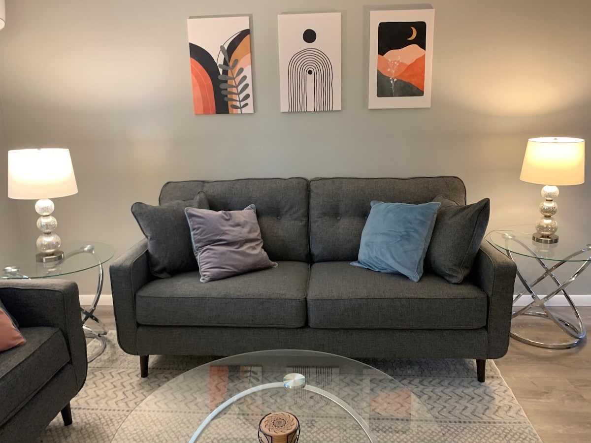 哥伦布市中心漂亮的粉色和灰色1卧室套房