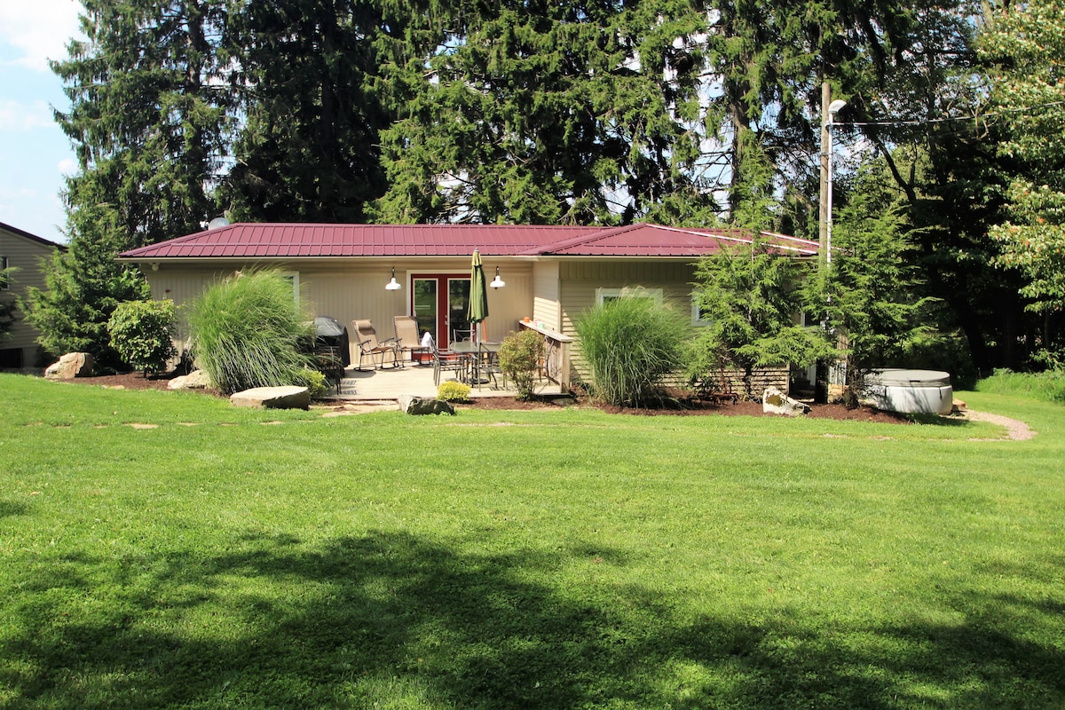 Maple Summit Inn is a mountain oasis. Quietly nestled in the mountains minutes from Ohiopyle & Fallingwater. Large wooded yard w/ front porch & fire pit. More roomy than appears. Enjoy the 6 person hot tub, firepit & BBQ grill. 2 bedrooms. Master a queen & private bath. 2nd room a bunk bed that holds 2 Full sized beds. Living room a sleeper sofa sectional couch with a queen sized bed. Kitchen has all supplies you might need to cook your meals at home. We offer games for families & kids WiFi