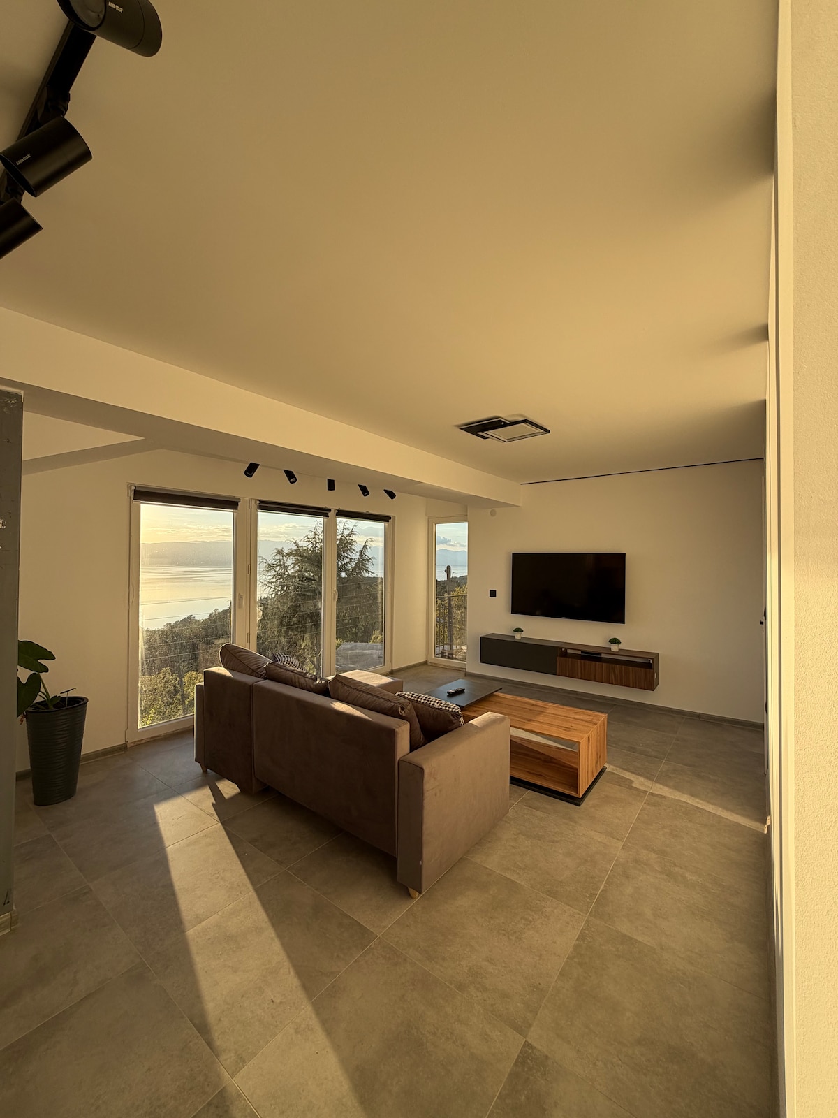 Experience the perfect blend of lakeside luxury and modern functionality at Villa Serenity. This 100 m² Ohrid retreat features a stunning patio with a gazebo, sunbeds, and panoramic views. Unwind by the fireplace or enjoy immersive movie nights with a cinema-wall projector and surround sound. Whether you're here for family adventures, hiking or a remote-work escape, our dedicated workspace and high-speed satellite internet keeps you connected. Your peaceful getaway awaits, book your stay today!