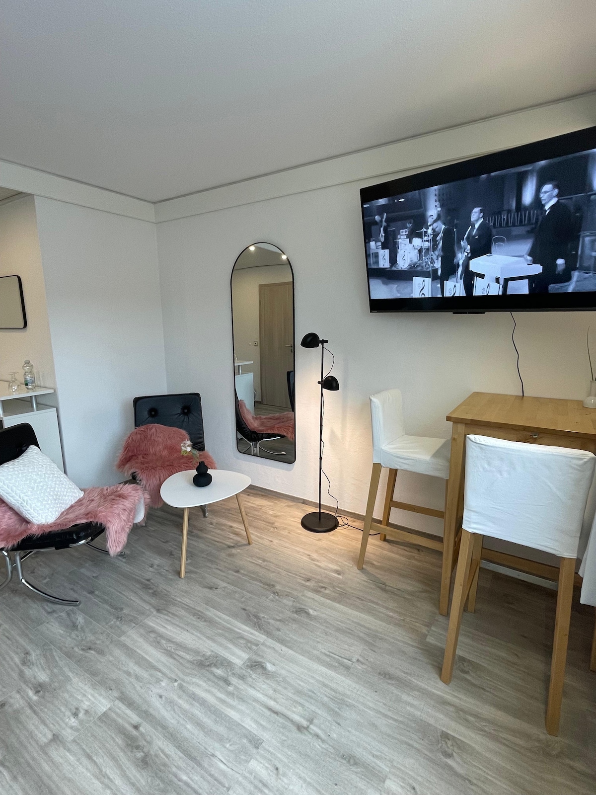 Die Wohnung befindet sich im Keller meines Hauses. Sie nutzen die Wohnung nur für sich und haben auch einen eigenen Eingang. Der Wohnbereich ist ein helles Zimmer und hat eine Fläche von ca. 26 qm². Das Sofa dient als Schlafmöglichkeit und hat eine breite von 1,40 m und reicht für 2 Personen aus. Auf dem Sofa befindet sich eine Schaumstoffaufpolsterung von ca. 6 cm. Als weitere Schlafmöglichkeit dient ein normales Bett. Parkplätze sind in unmittelbarer Nähe ausreichend vorhanden.