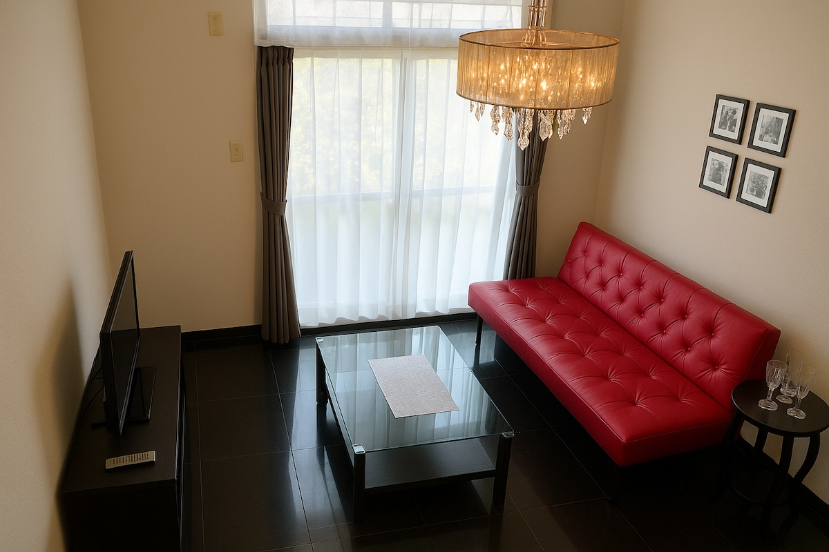 赤×黒のモダンなインテリアで、ラウンジのような非日常を過ごしてみませんか。 ロフトを寝室として使用。 新宿へ電車で直通約60分、原宿(明治神宮前)・表参道まで直通約70分、小田原まで約30分、箱根湯本まで約45分アクセス抜群です。 駅からは徒歩5分。 徒歩3分に有料駐車場あり。 隣駅の鶴巻温泉駅徒歩2分には日帰り天然温泉弘法の里湯があります。 近隣の小田急線渋沢駅のホームからは雄大な富士山も望めます。 調理器具、洗濯機、Wi-Fi・冷暖房完備、バス・トイレ別で、長期滞在にも◎ 徒歩圏内にコンビニ、カフェ、飲食店が多数あります。 学生さん、ご家族の東海大学訪問やオープンキャンパス、試験時の宿泊にもおすすめです。 箱根や小田原観光の拠点に 落ち着いた大人の旅、一人時間、ワーケーション、カップルでの滞在にもぴったりの空間です。 さらに当建物内には宿泊施設が他に2室あります。空き状況により、合計最大8名の宿泊が可能です。 スタイリッシュな空間で特別な時間をお過ごしください。