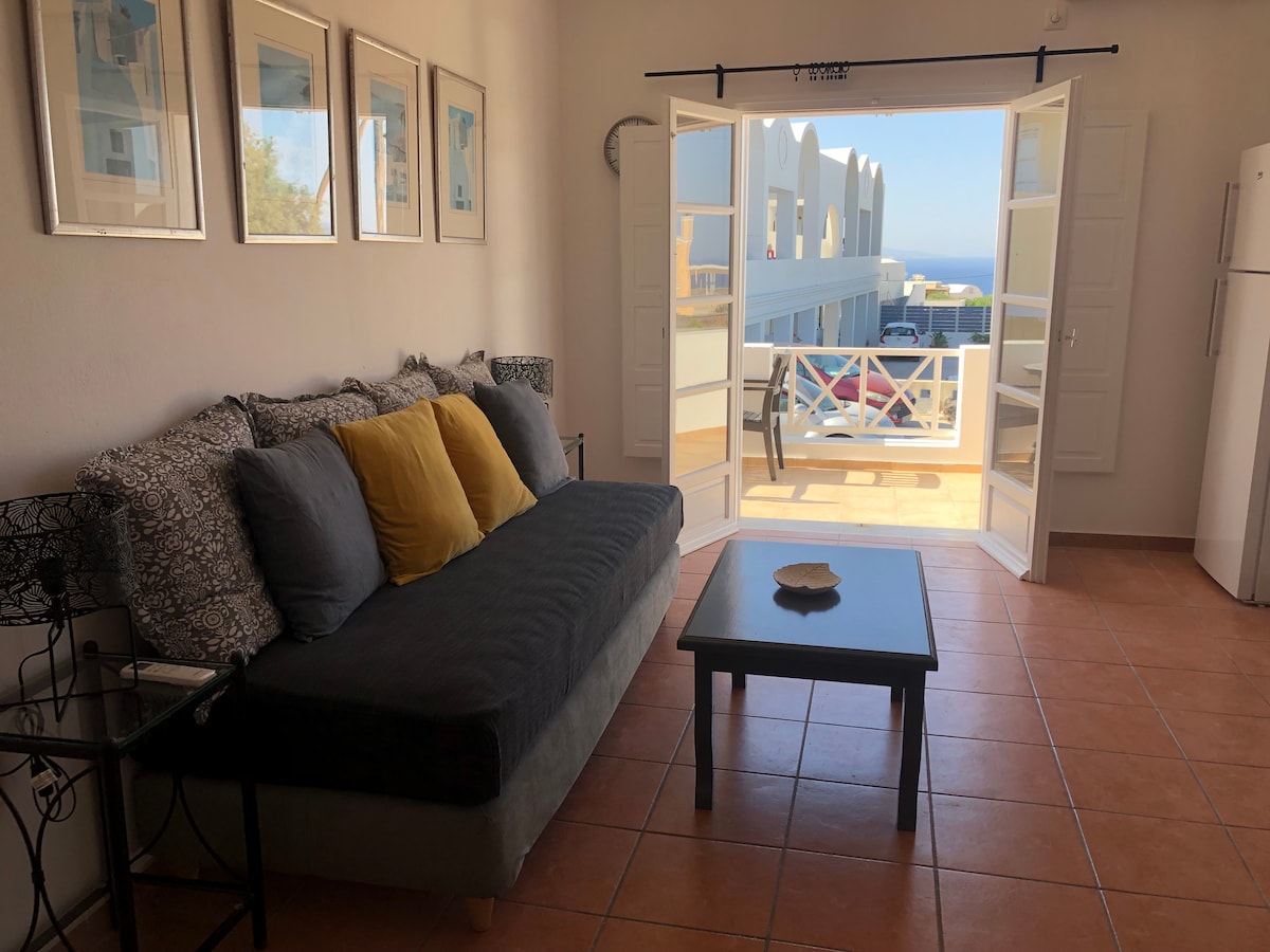 This is a studio for 2 guests It has a small kitchen and sitting area. There is a private balcony viewing the caldera. Situated in a quiet spot a few minutes walk from the main pathway and part of the Pano Meria group of studios and cave houses.