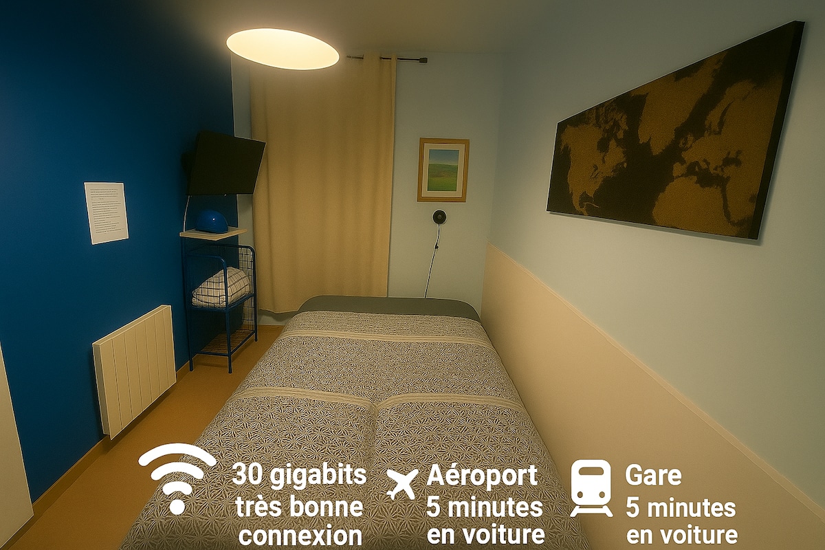 Big 2 room apartment of 60m2, renovated with equiped kitchen. A double bedroom is available on the ground floor. Hygiene products, coffee and quality teas are offered to you. Upstairs a fitted open-space will allow you to relax. At this location, if necessary and at your request, we can install a comfortable double inflatable mattress, for one or two additional people. Before validating your reservation, remember to specify the number of people.
