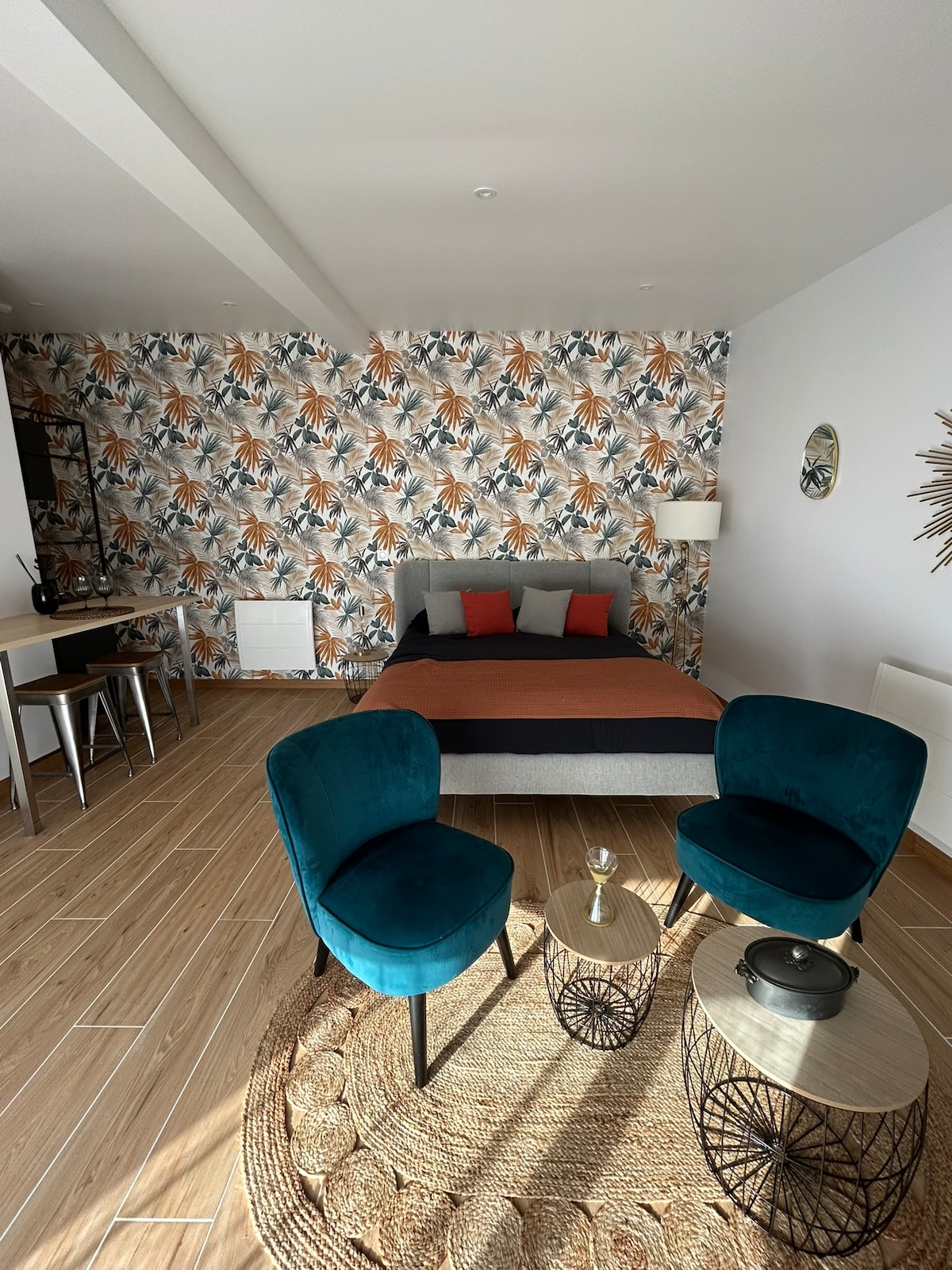 Rénové à neuf, le logement à été conçu pour que vous puissiez bénéficier du charme de l'ancien dans un appartement design prêt à vous recevoir. À 10 min de l'aéroport en voiture, vous sejournerez dans une petite maison indépendante au sein de notre propriété. La dépendance est composée au rez de chaussée d'un espace salon et espace cuisine avec frigo , sdb privative avec baignoire, wc lavabo et à l'étage vous aurez un lit 2 places.