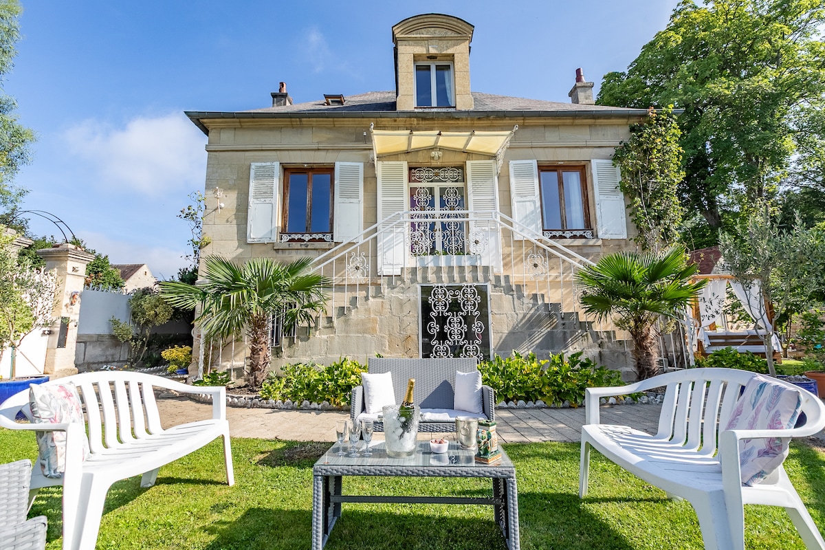 Shanthi Bhavan est notre maison de campagne. En sanscrit cela signifie maison où règne la paix. C'est une maison familiale située dans l'Oise, à 1h30 de Paris et 30 minutes de l'aéroport de Beauvais. Elle dispose d'un grand jardin avec jacuzzi, aire de jeux, et trampoline. La maison est au calme sans vis-à-vis. Nous vous accueillons pour des moments en famille ou entre amis. Elle dispose de 6 chambres, d'un sauna et cinéma en sous-sol et d'une petite salle de jeux intérieure pour les enfants.