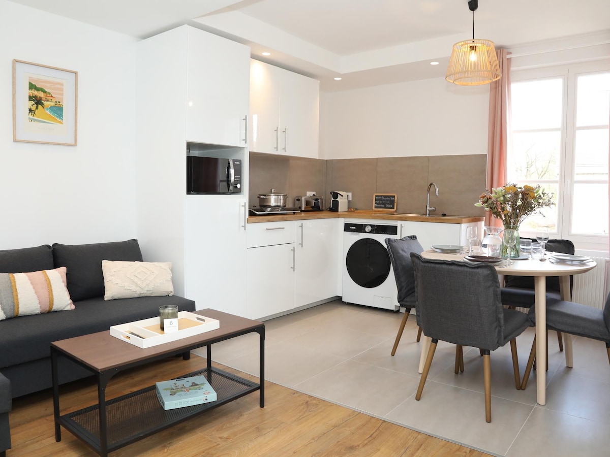 Jolie appartement F2 en plein centre-ville, 5 mm à pied de la gare. Parking , wifi : gratuit SÉJOUR ÉQUIPÉ CHAMBRE ÉQUIPÉE Une cuisine aménagée: lave vaisselle,lave linge, four, plaque de cuisson,hotte, micro-ondes, réfrigérateur, cafetière TASSIMO , grille pain etc... ), salle d’eau avec baignoire, wc séparé. Si vous êtes 2 personnes me prévenir si vous avez besoin du canapé lit A très vite pour un séjour agréable